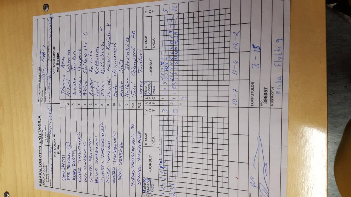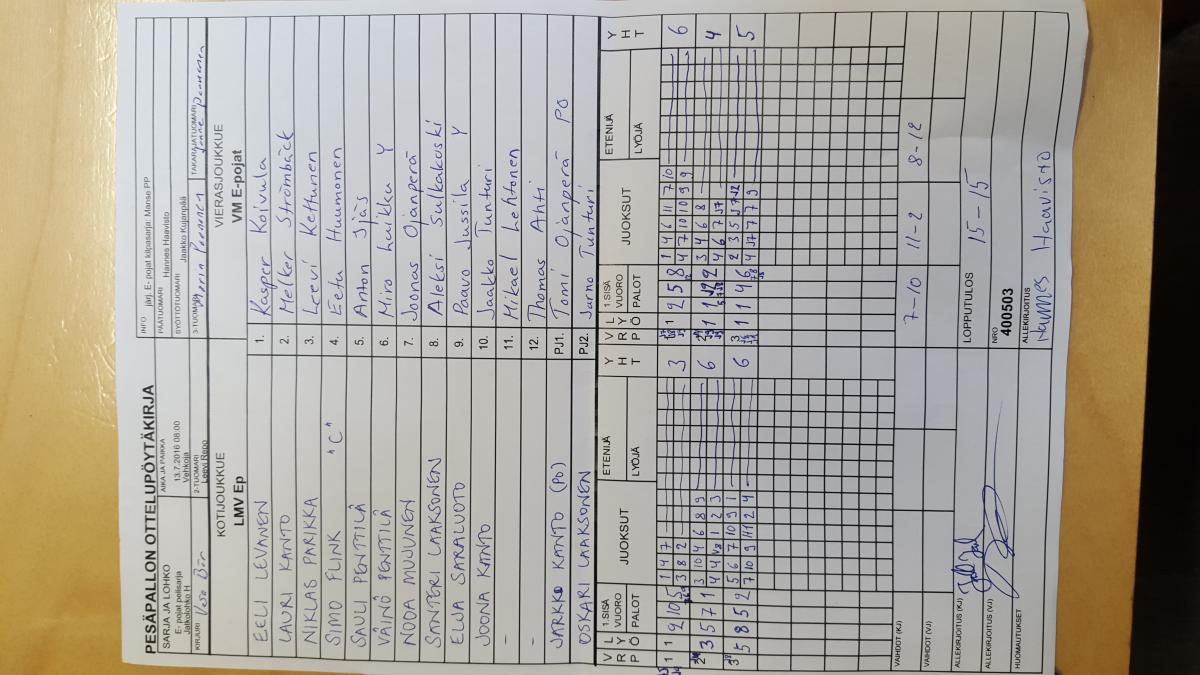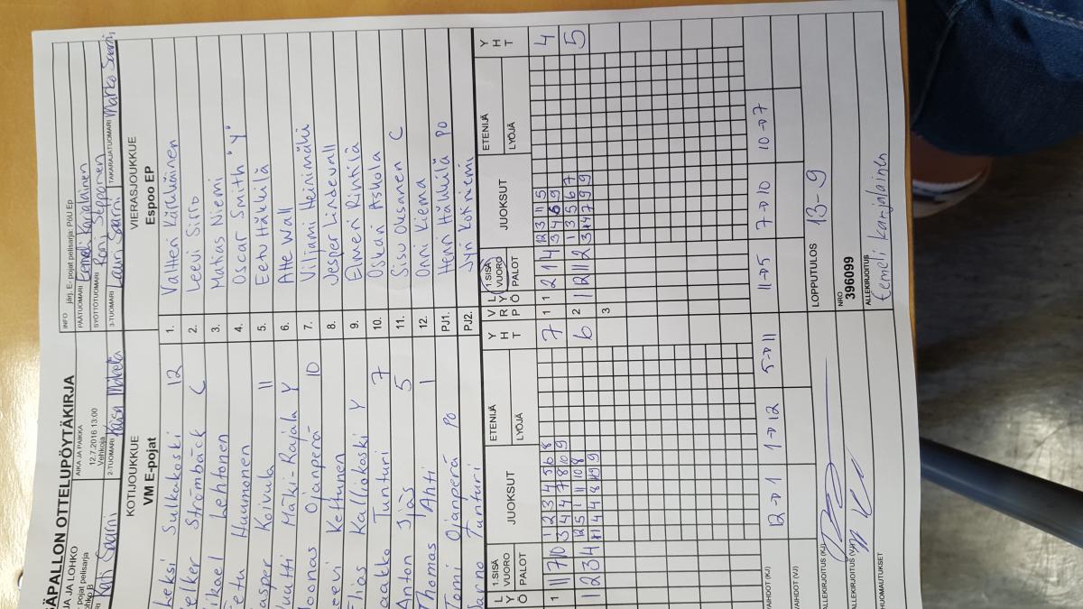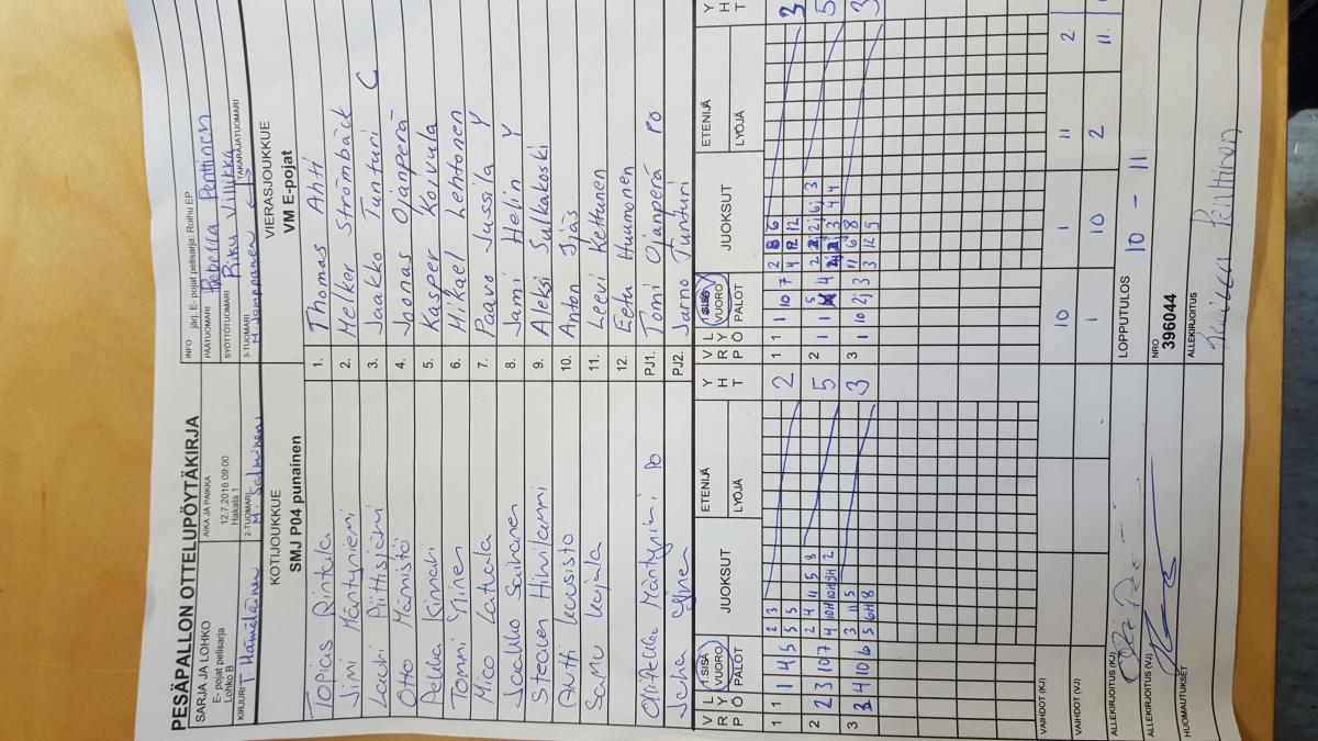 | E- pojat pelisarja - Lohko C | 12.7.2016 14:00 | Vehkoja | PK-P | Tahko Yellow | VM E-pojat |