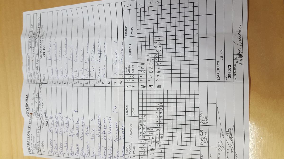 | 14.7.2016 13:00 | Pihkala 1 | VM E-pojat | KPL E-1 | 10-8 | näytä |