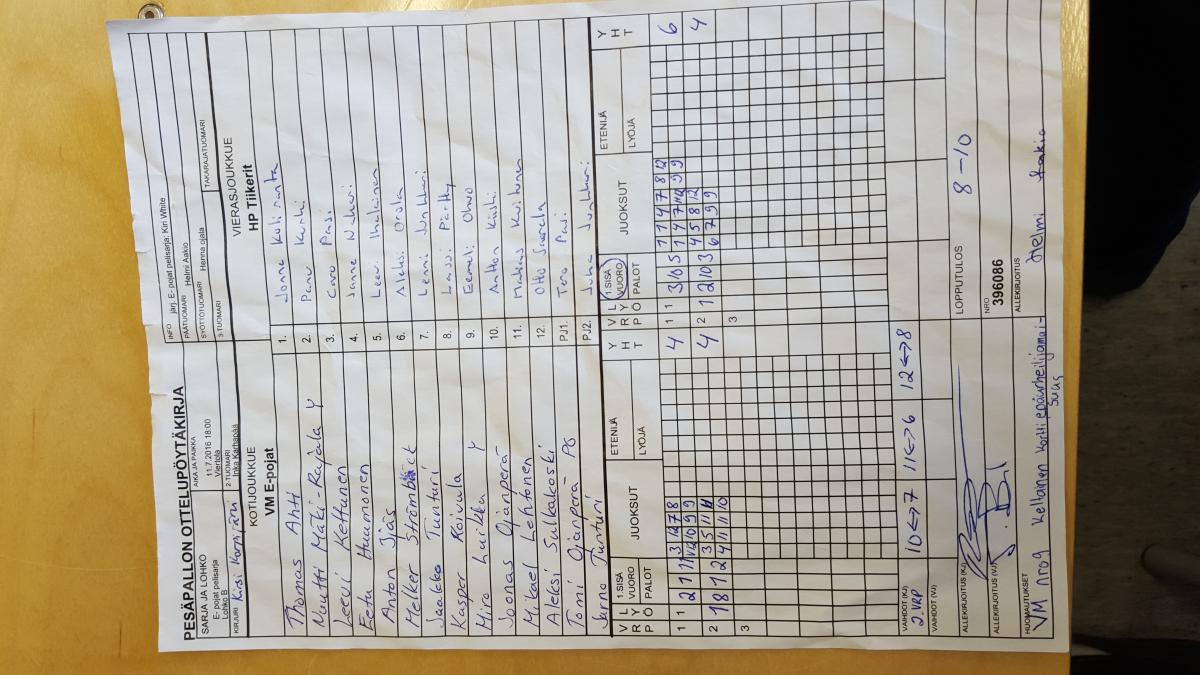 | 11.7.2016 18:00 | Viertola | VM E-pojat | HP Tiikerit | 8-10 | näytä |