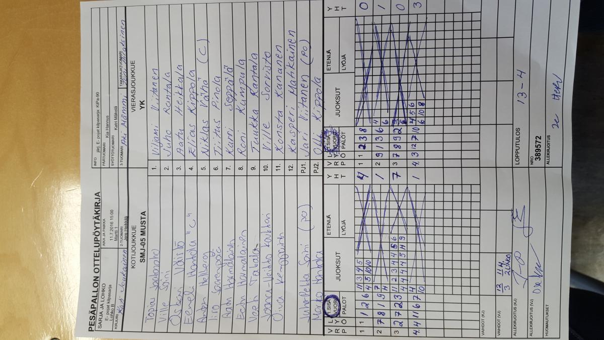 | E- pojat pelisarja - Jatkolohko H | 13.7.2016 11:00 | Martti 1 | SMJ-05 PUNAINEN | Espoo EP | YK |