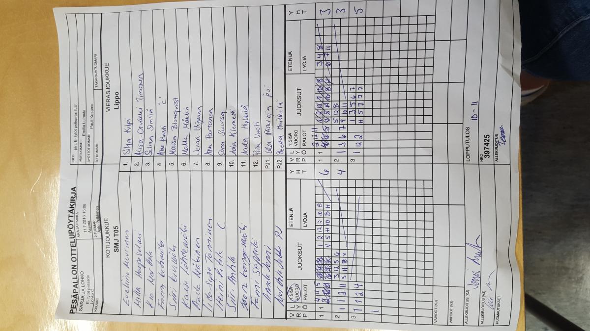 | Lohko D | 12.7.2016 17:00 | Paavola | MJ-05 | VePe | Lippo |
