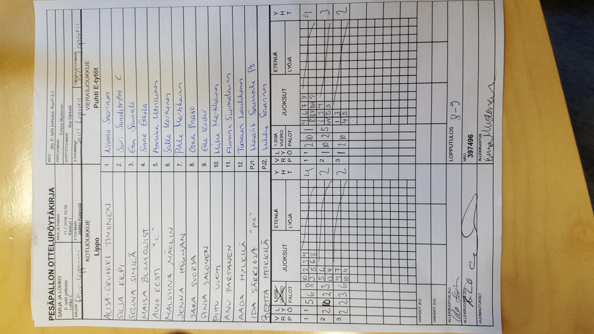 | E- tytöt pelisarja - Lohko A | 11.7.2016 09:30 | Kankuri 1 | VM | KPK E-tytöt | Lippo |