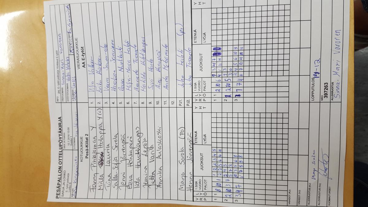 | E- tytöt pelisarja - Lohko A | 11.7.2016 13:00 | Asema | KPK E-tytöt | Pesä Ysit | AA E-tytöt |