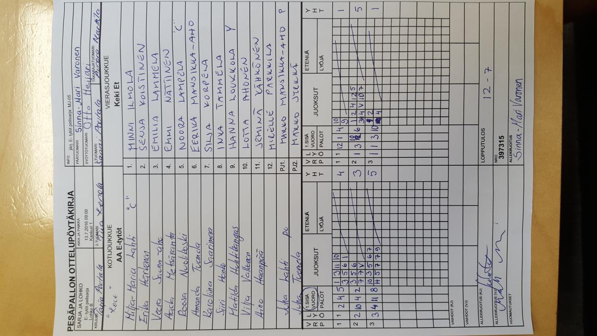 | 13.7.2016 09:00 | Kankuri 1 | AA E-tytöt | Keki Et | 12-7 | näytä |