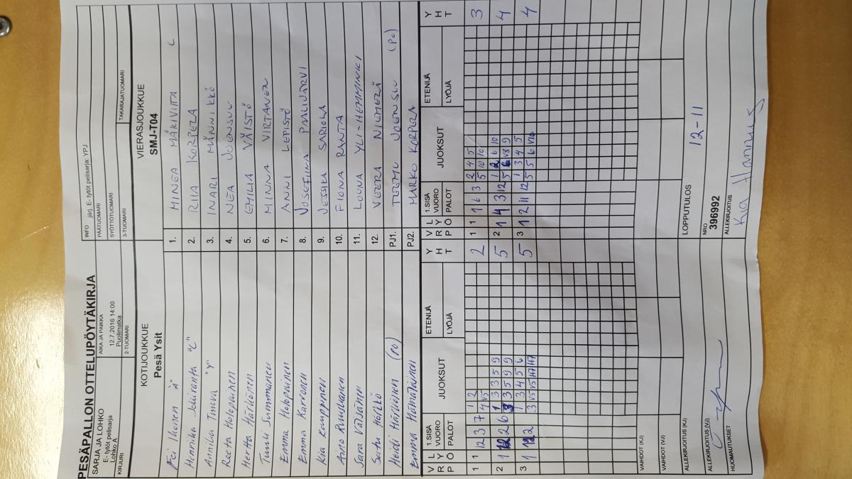 | Jatkolohko I | 14.7.2016 14:00 | Paavola | PomPy | Viu | Pesä Ysit |