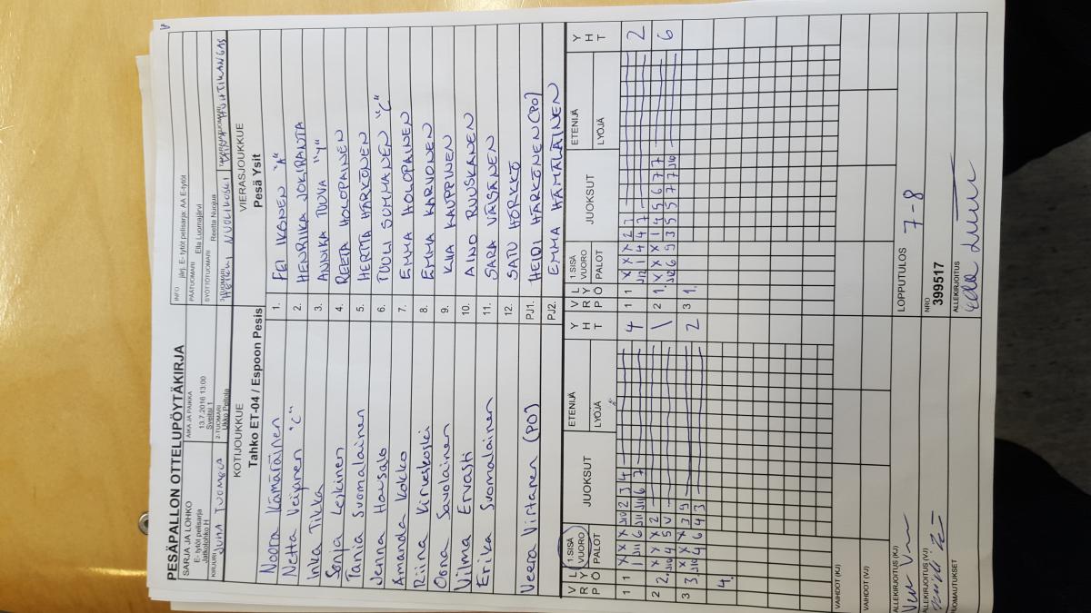 | E- tytöt pelisarja - Lohko B | 13.7.2016 09:00 | Puolimatka | ILU | Pesä-Kiilat 2 | Pesä Ysit |