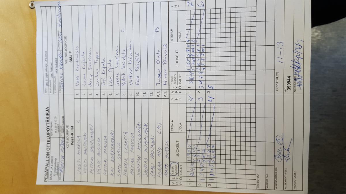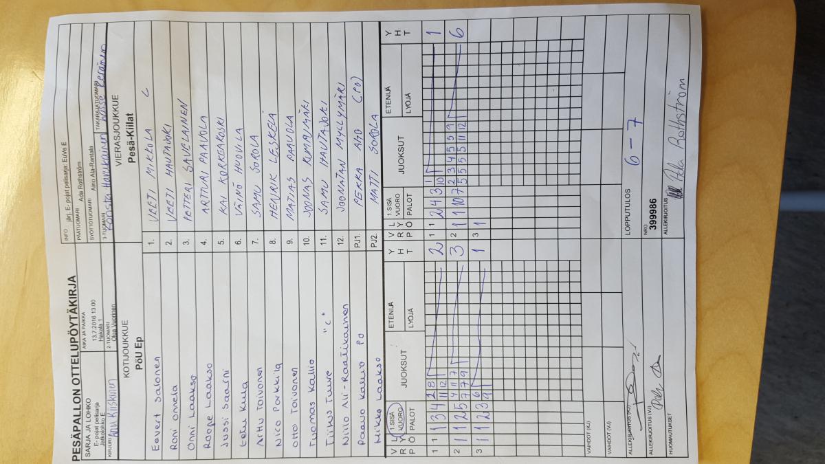 | Jatkolohko F | 13.7.2016 15:00 | Viertola | Kepe EP | SMJ P04 punainen | Pesä-Kiilat |