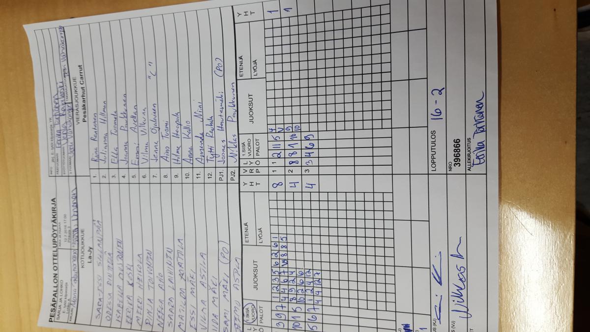| 12.7.2016 17:00 | Pihkala 3 | La-Jy | Pesäkarhut Carrut | 16-2 | näytä |