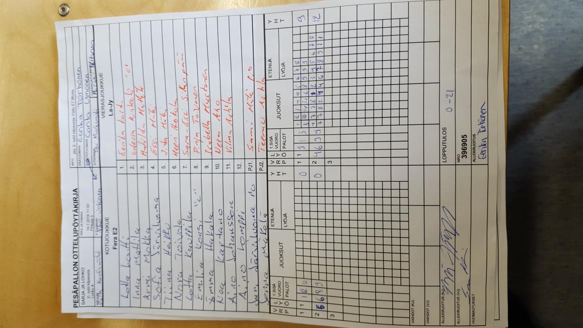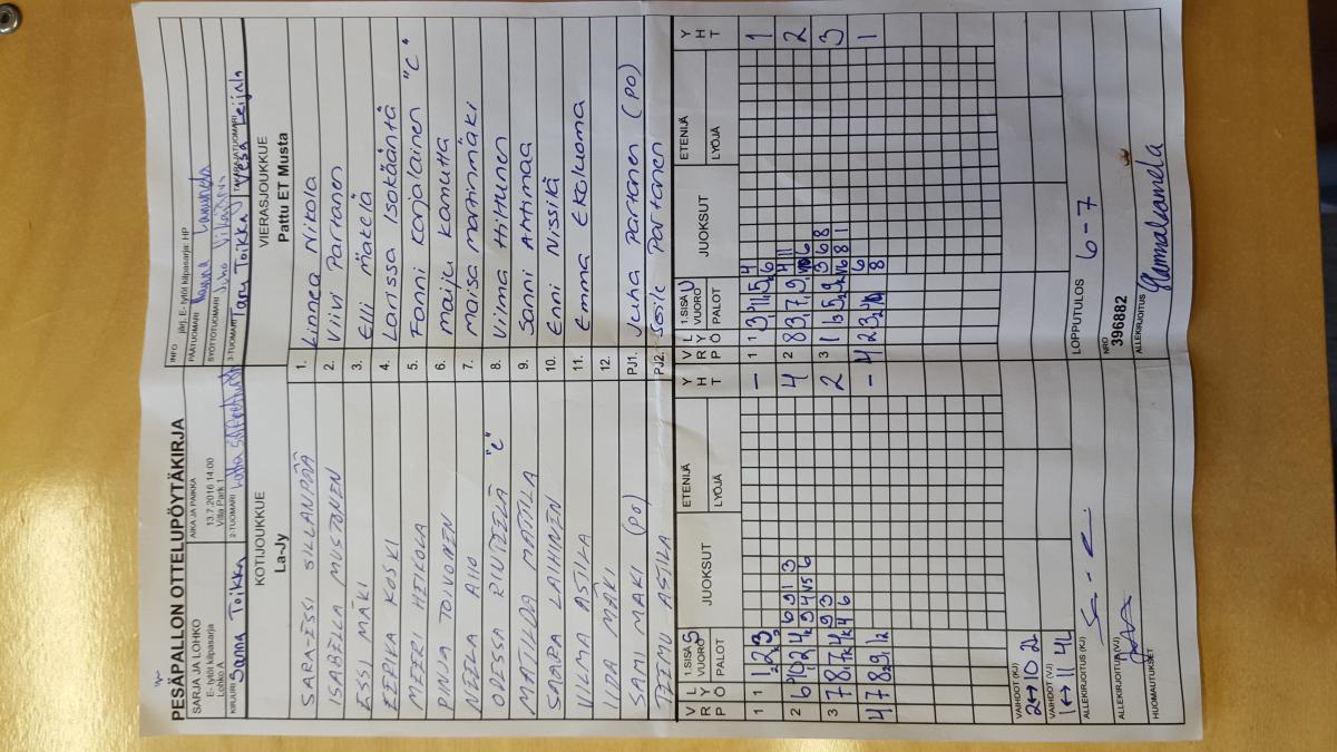 | E- tytöt kilpasarja - Lohko A | 11.7.2016 13:00 | Pihkala 3 | Fera E2 | Pesäkarhut Carrut | La-Jy |