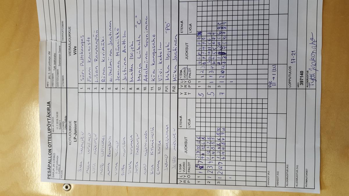 | 11.7.2016 14:00 | Sveitsi 1 | LP-Juniorit | ViVe | 17-21 | näytä |