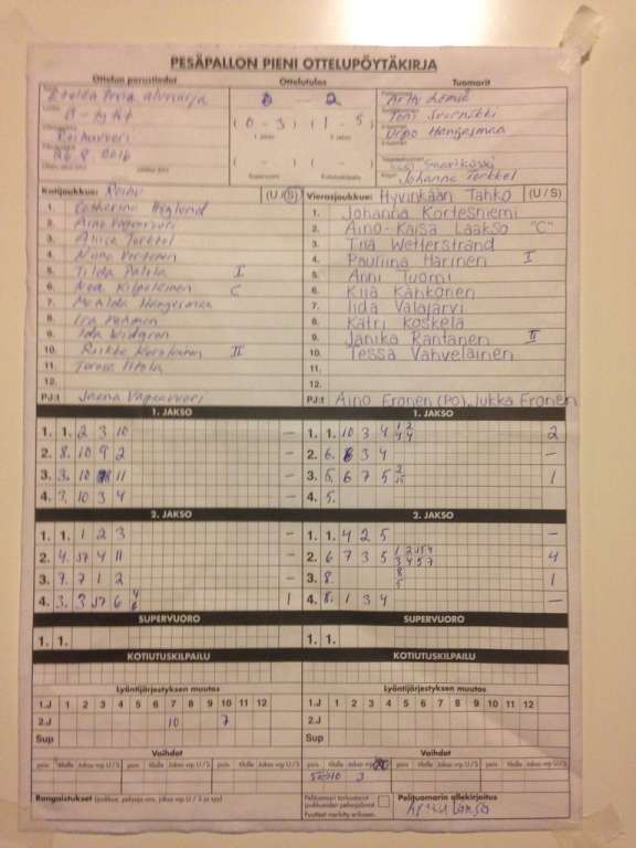 | 7.9.2016 | Espoo | Tahko | 0-1 (5-5, 2-15) | näytä | |