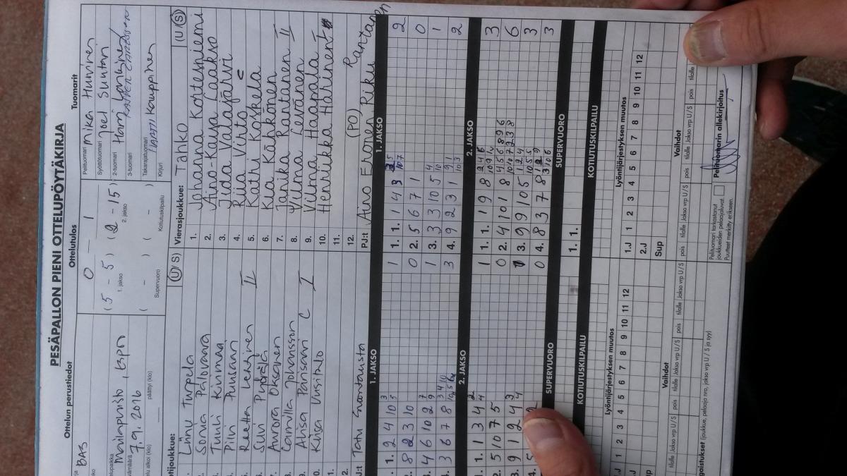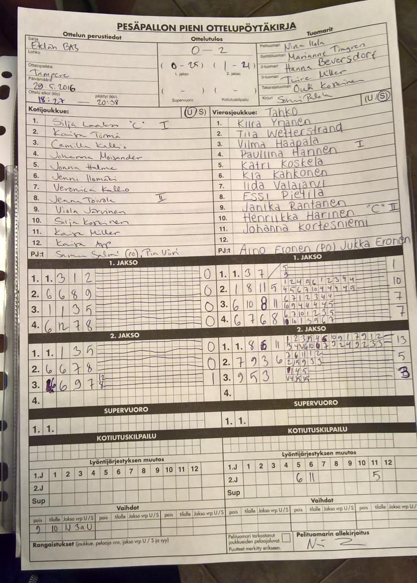 | 9.9.2016 | Tahko | Paukku BT | 2-0 (19-1, 9-4) | näytä |