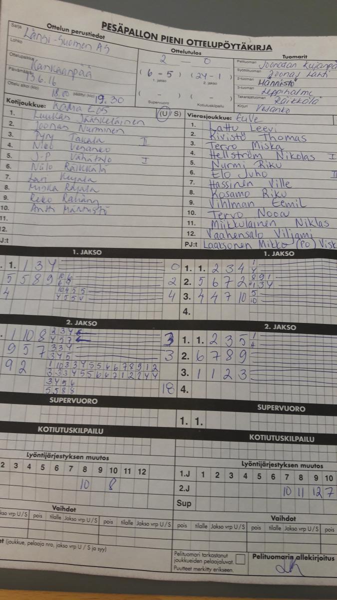 | 20.6.2016 18:00 | KaMa E-05 | KaMa E-04 pojat | 0-2 (1-13, 1-10) | näytä | |