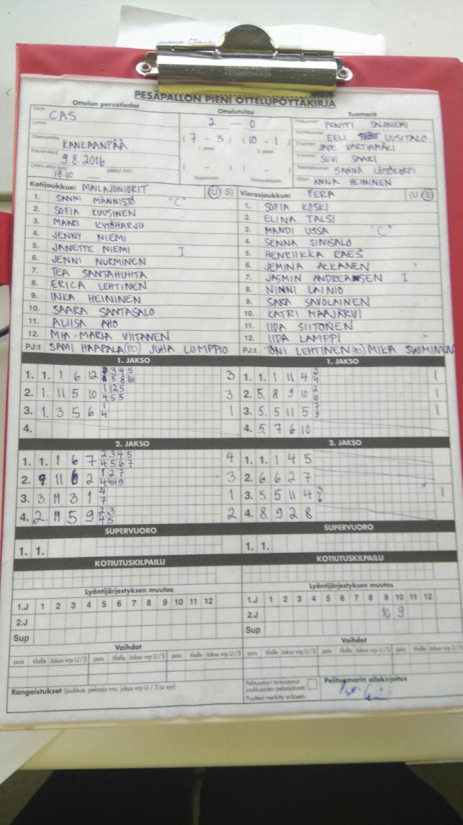 | 9.8.2016 18:00 | Mailajuniorit C-tytöt | Fera | 2-0 (7-3, 10-1) | näytä | |