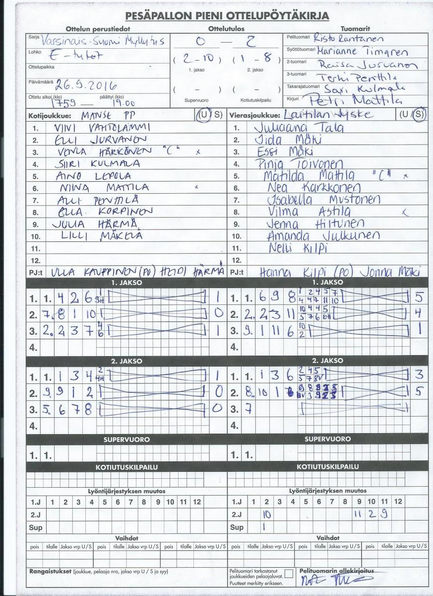 | 26.8.2016 | Tampere | Laitila | 0-2 (2-10, 1-8) | näytä | |