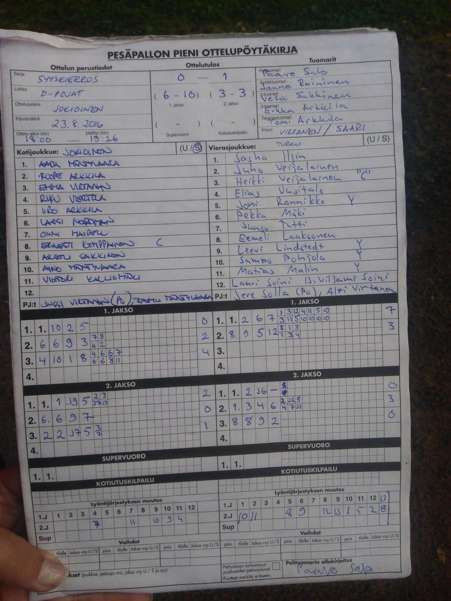 | 23.8.2016 | Jokioinen | Turku | 0-1 (6-10, 3-3) | näytä | |