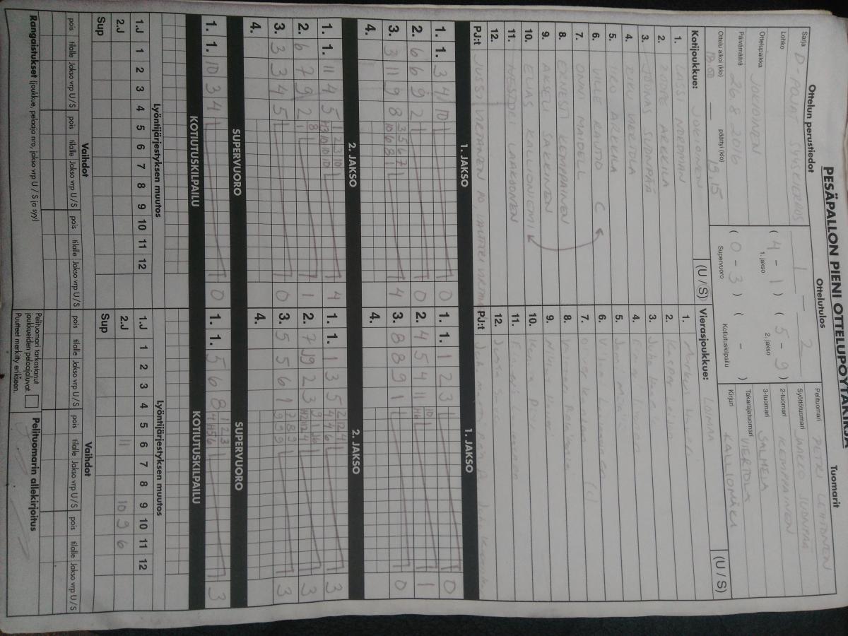 | 18.8.2016 | Tampere 03 | Jokioinen | 0-2 (2-8, 2-5) | ||