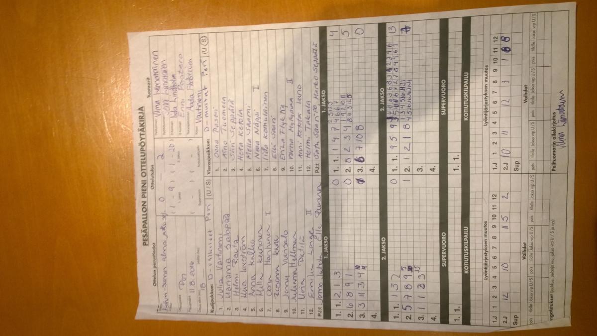 | 20.8.2016 12:00 | Mailajuniorit E-tytöt | Pesäkarhut D Valkoiset | 1-2 (11-4, 9-11, 1-2) | ||