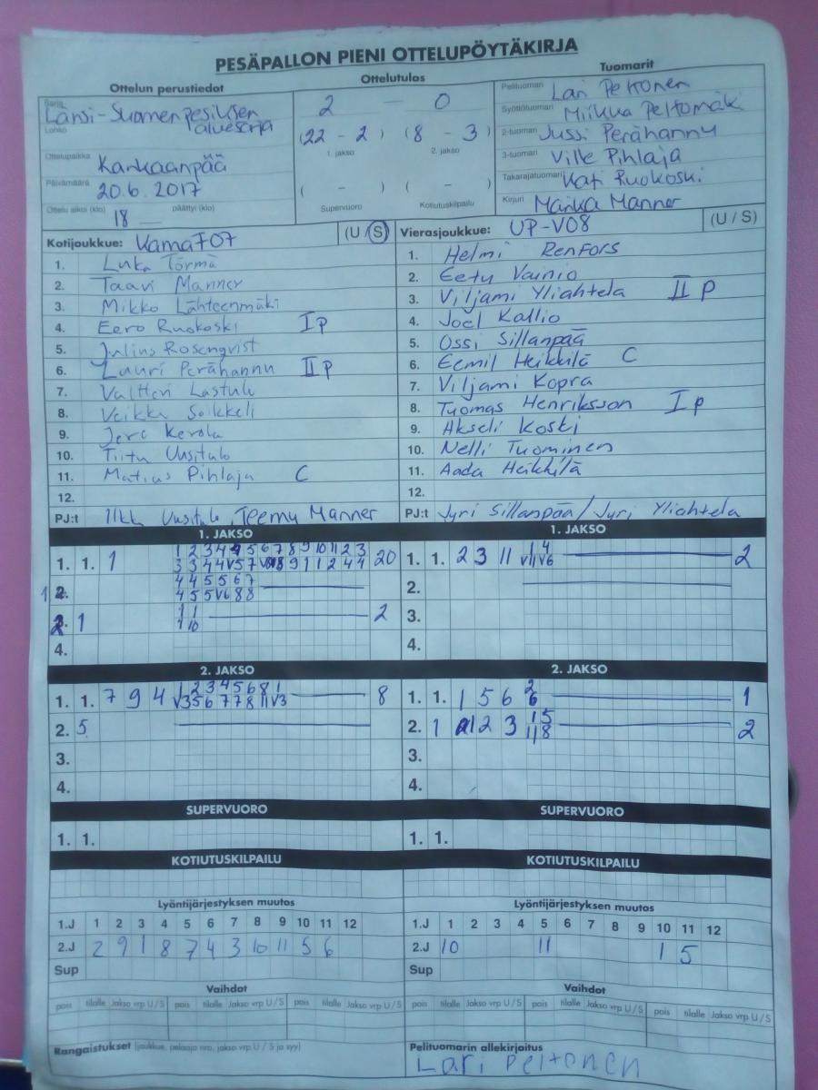 | 20.6.2017 18:00 | KaMa F-07 | UP-V F08 -pojat | 2-0 (22-2, 8-3) | näytä | |