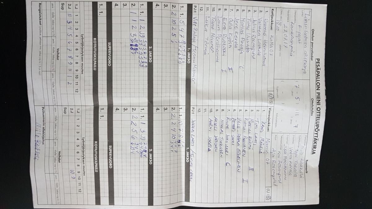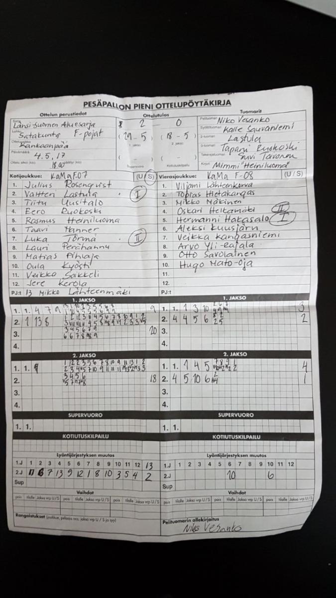 | 23.7.2017 15:00 | KaMa F-07 | UP-V F-07 pojat | 2-0 (17-7, 14-3) | näytä | |