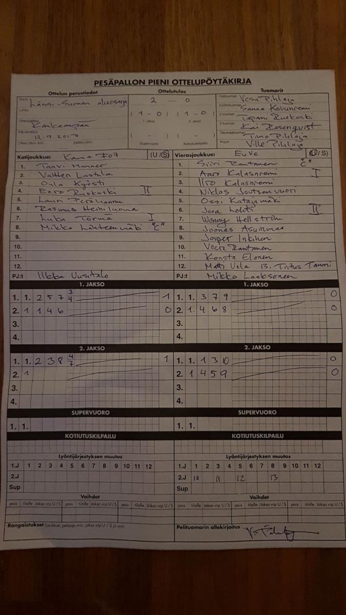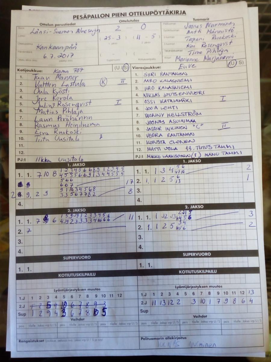 | 6.7.2017 18:00 | KaMa F-07 | EuVe F | 2-0 (25-3, 11-5) | näytä | |