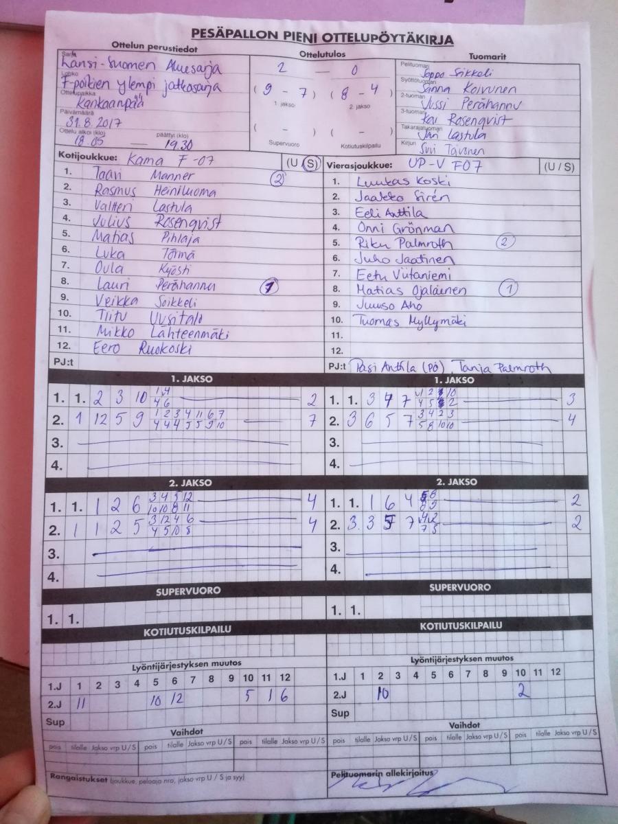| 31.8.2017 18:00 | KaMa F-07 | UP-V F-07 pojat | 2-0 (9-7, 8-4) | näytä |