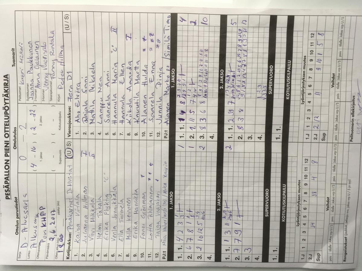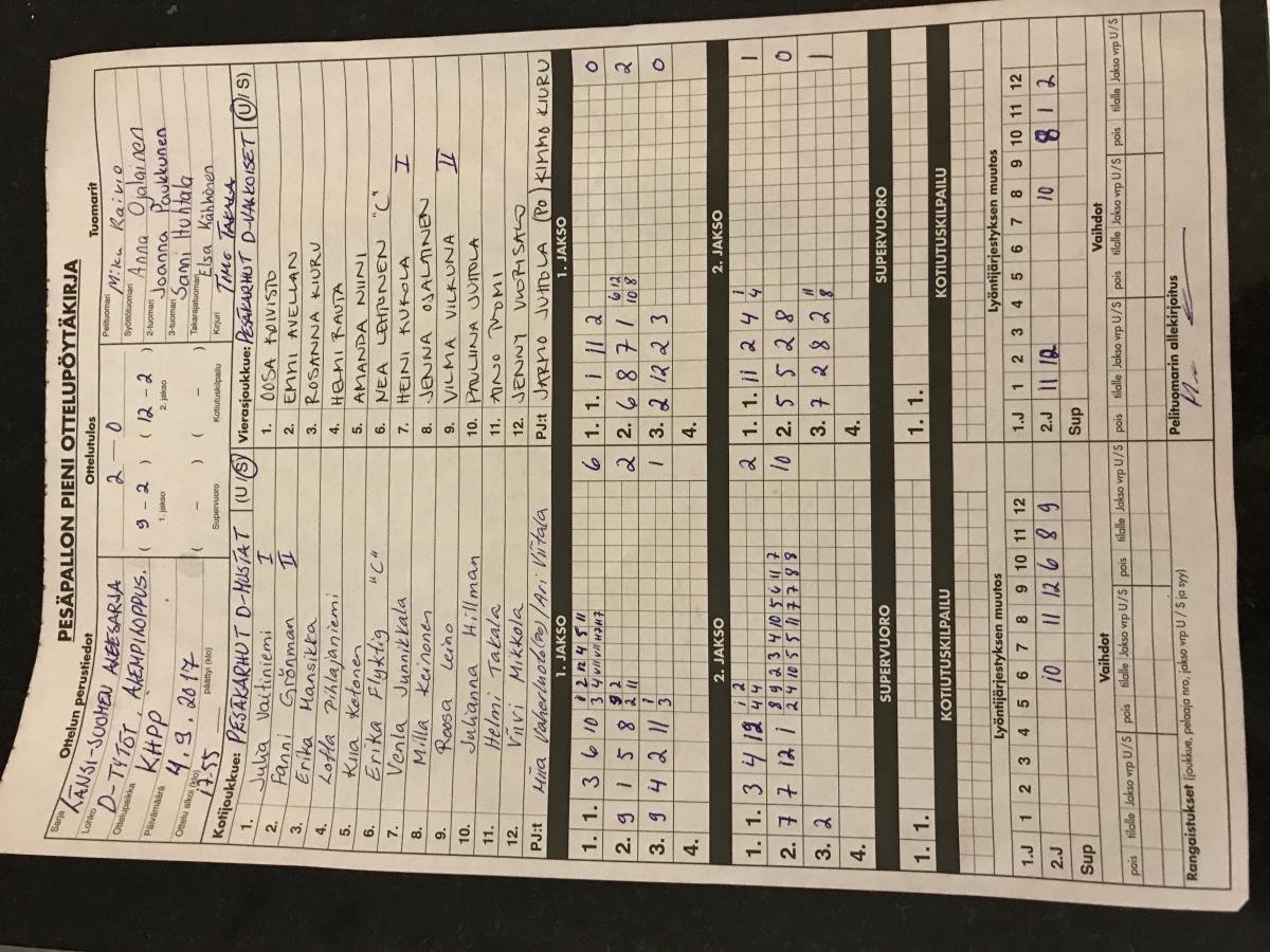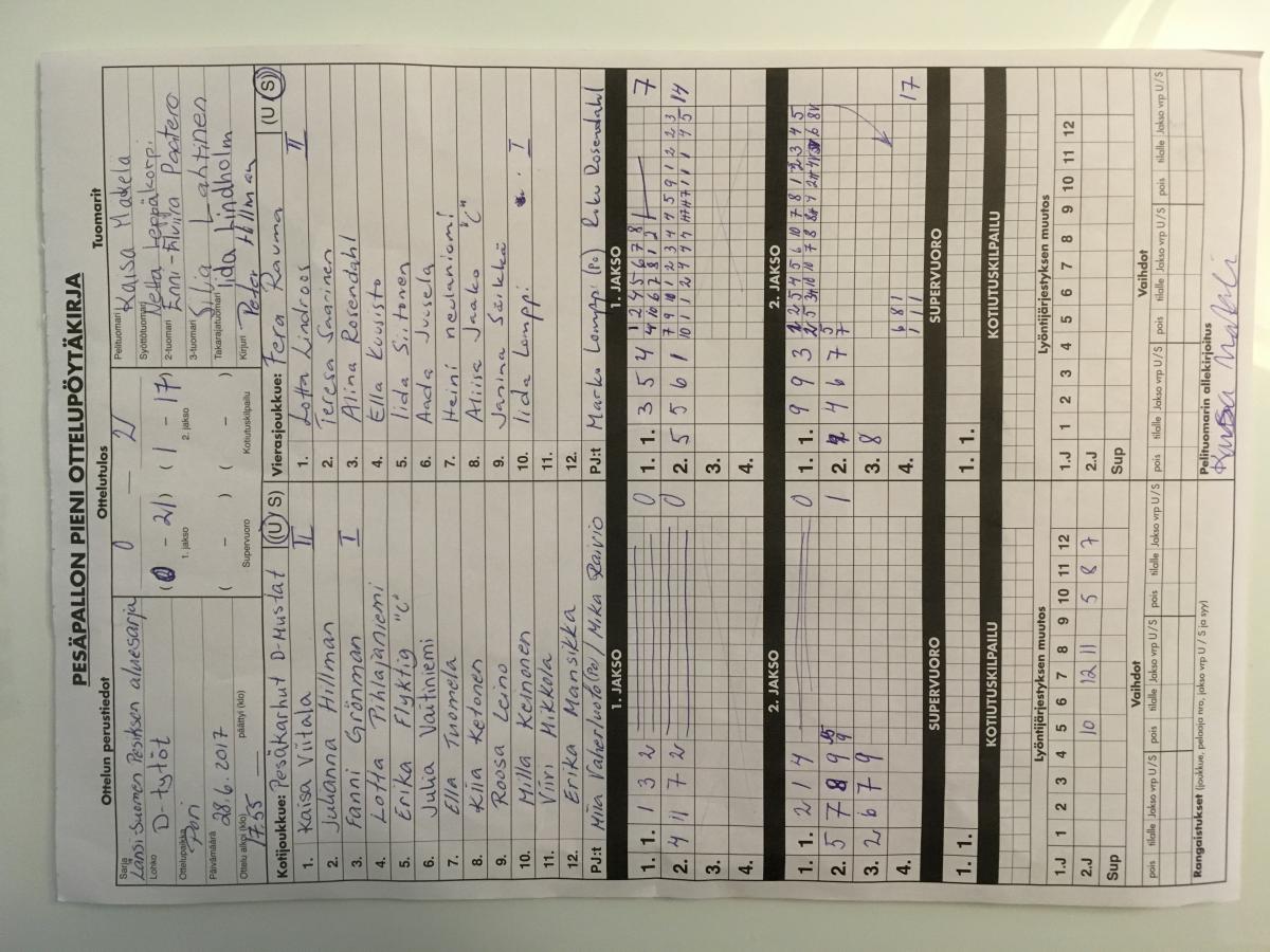 | 8.6.2017 18:00 | Lajy D | Pesäkarhut D-mustat | 2-0 (27-7, 13-7) | näytä | |