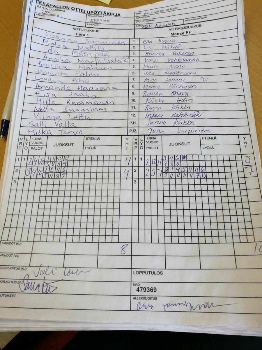 | Taso-ottelut A | 11.6.2017 11:30 | Kivistö 1 | Fera 1 | NJ | Manse PP |