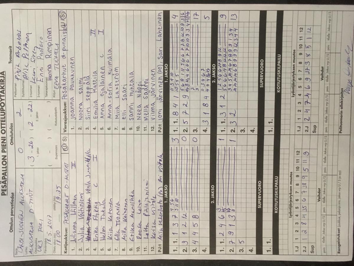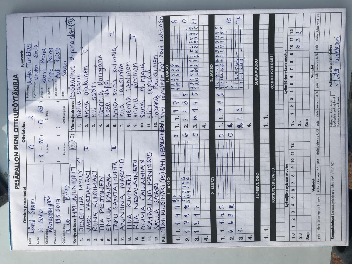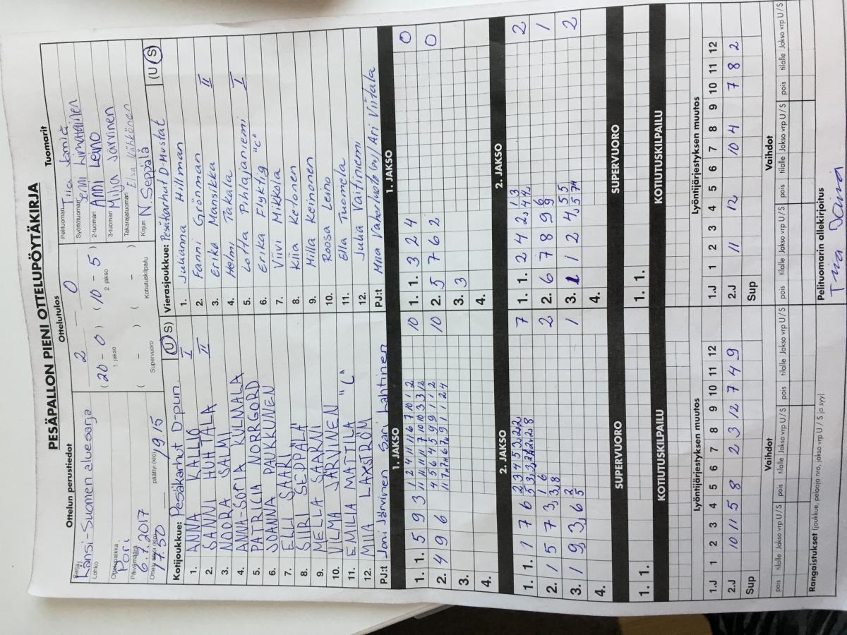 | 29.6.2017 18:00 | Pesäkarhut D-punaiset | MJ-D tytöt | 2-0 (27-0, 25-5) | näytä | |