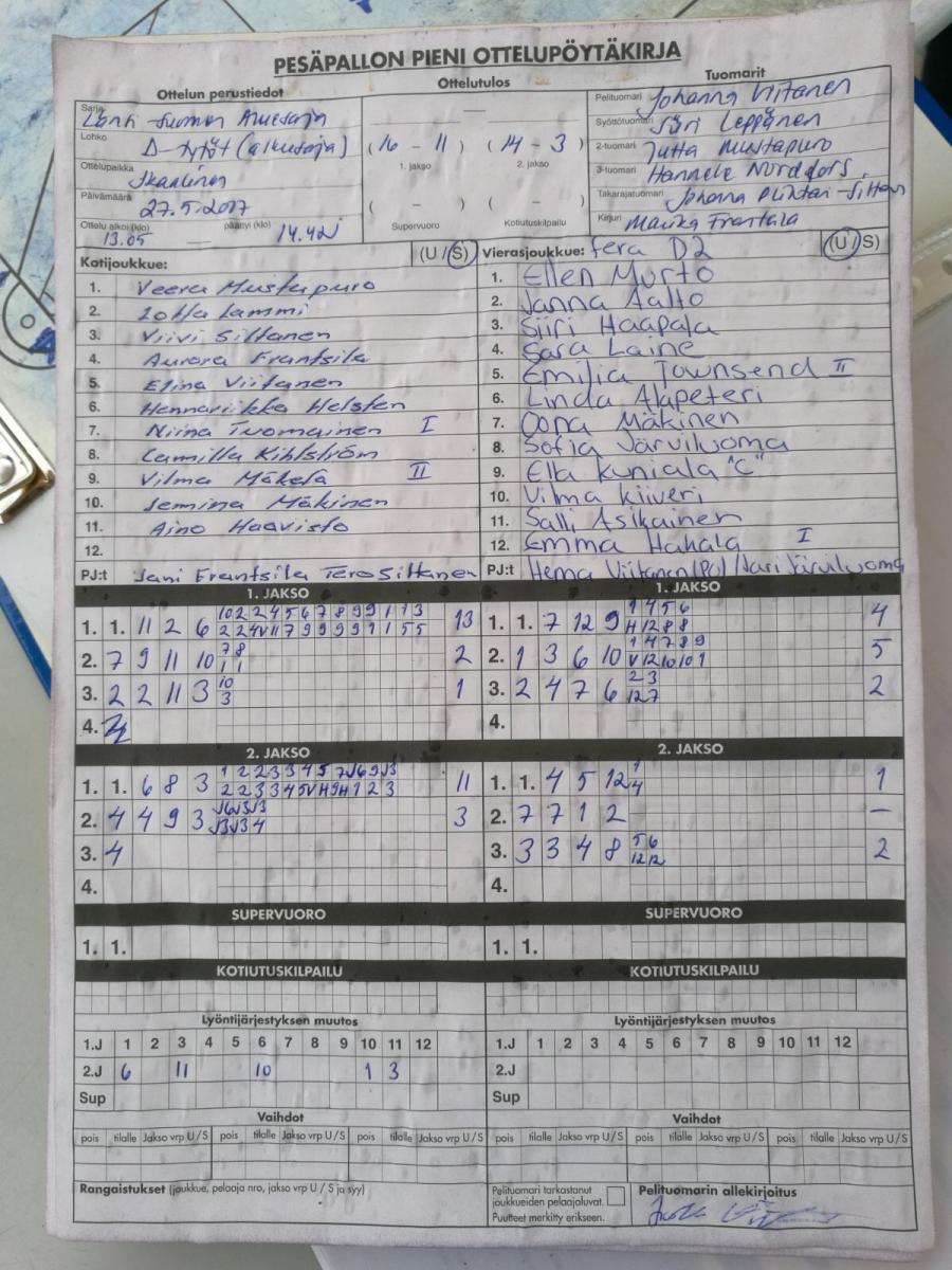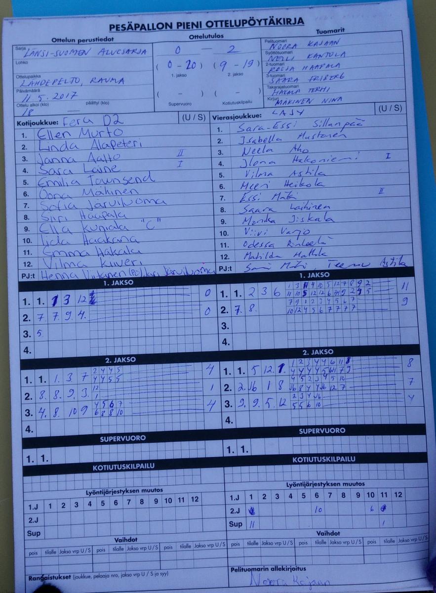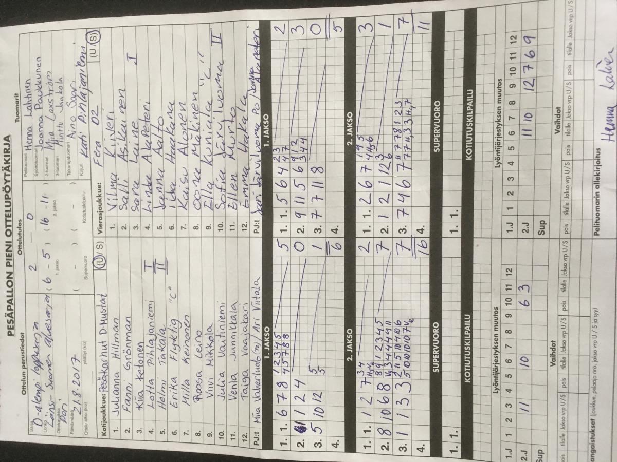 | 11.5.2017 18:00 | Fera D2 | Lajy D | 0-2 (0-20, 9-19) | näytä | |