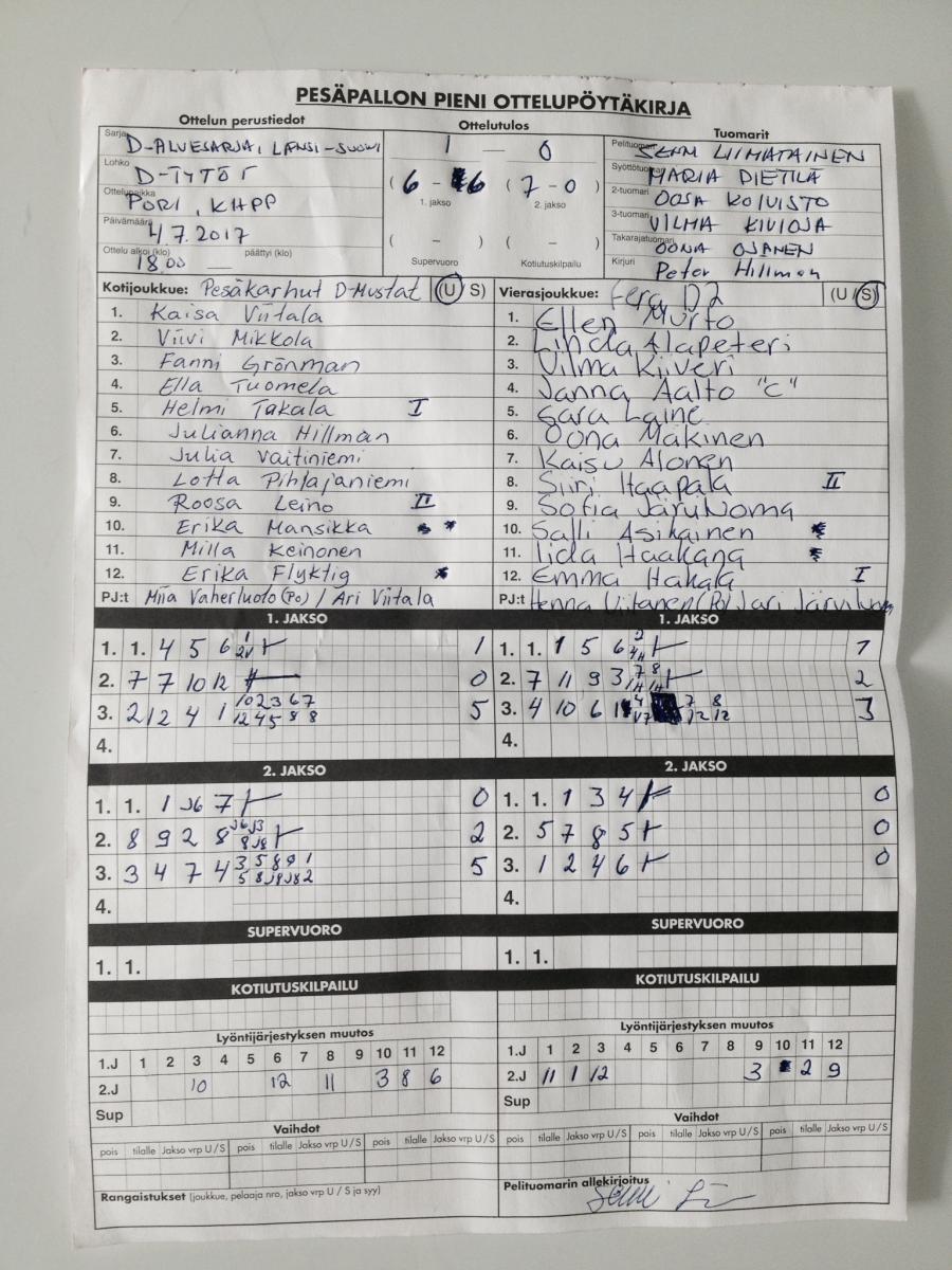 | 29.6.2017 18:00 | Lajy D | Fera D2 | 2-0 (25-7, 14-0) | näytä | |