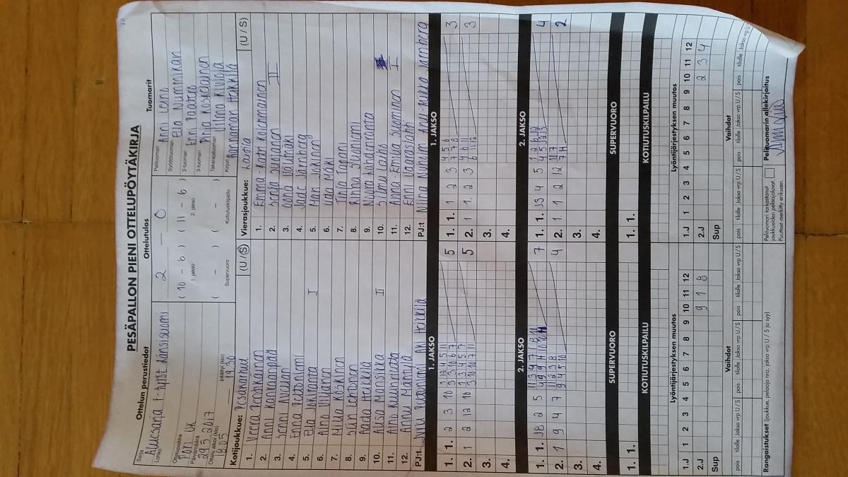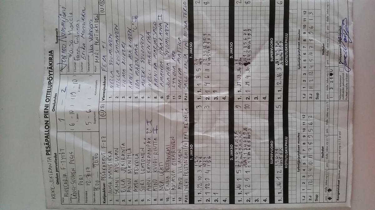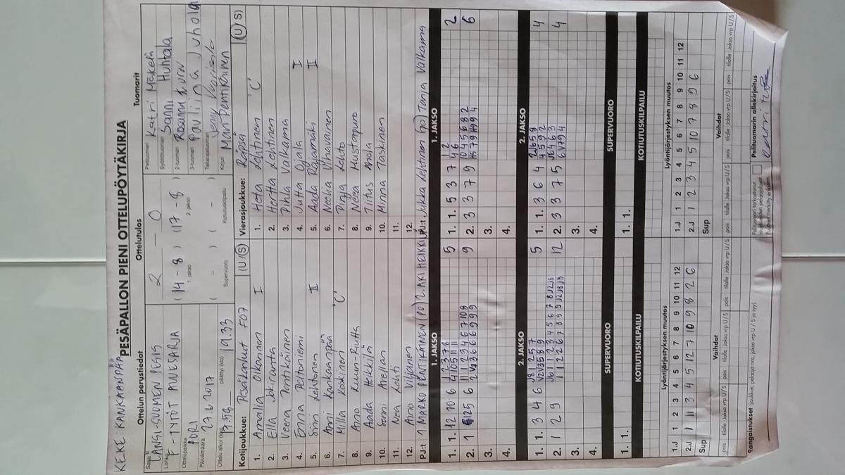 | 19.7.2017 18:00 | Pesäkarhut F07 | UP-V/MJ | 2-0 (13-6, 9-5) | näytä | |
