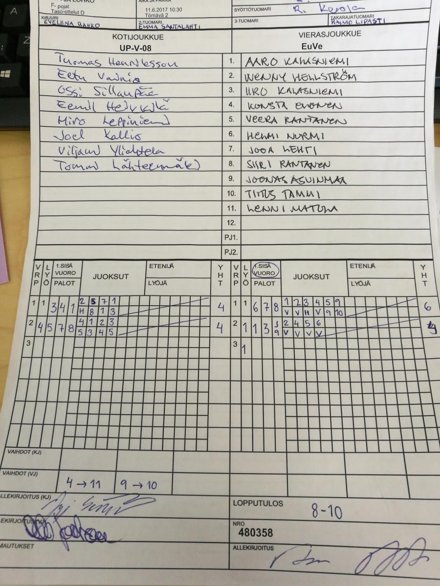| 9.6.2017 14:30 | Nurmon yläkoulu 1 | EuVe | KoU | 1-10 | näytä |