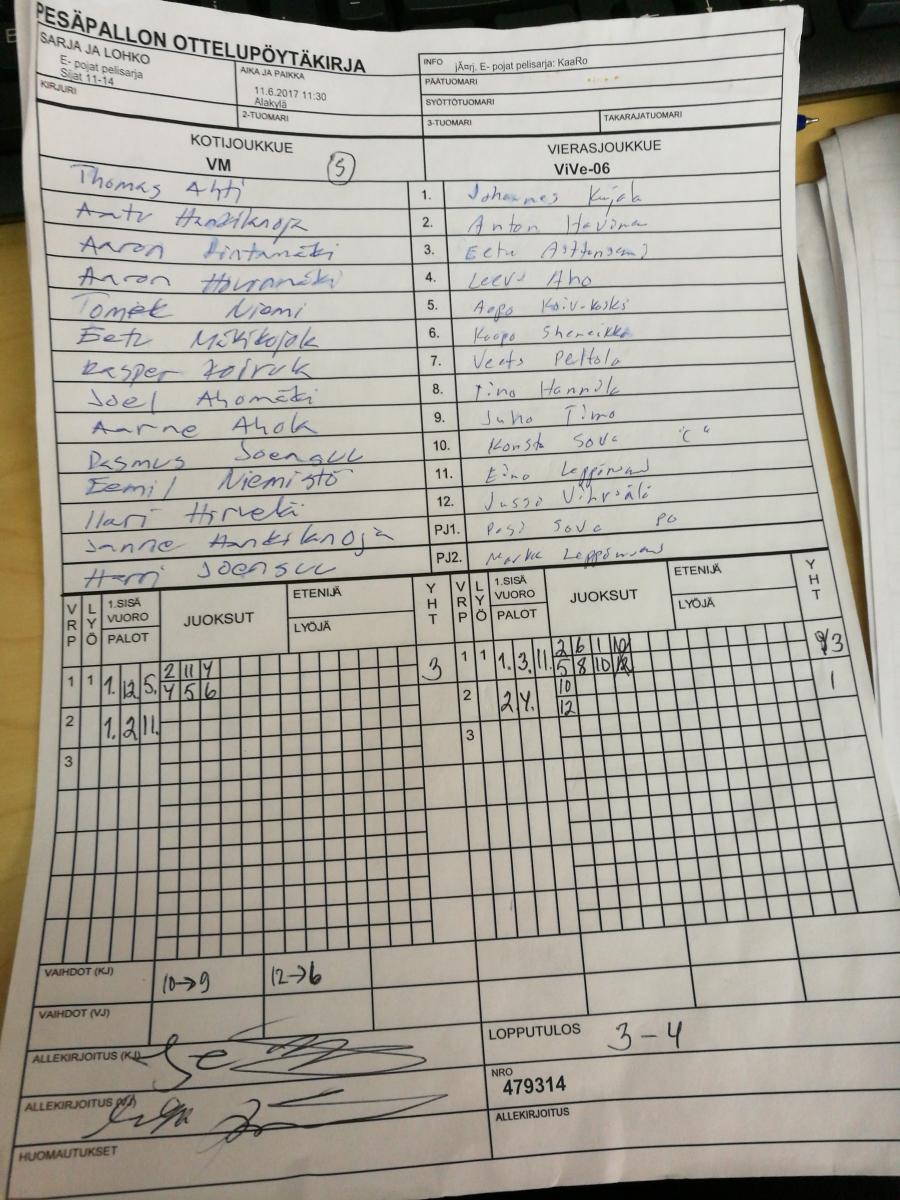 | 11.6.2017 09:30 | Alakylä | AA 05-06 keltainen | VM | 6-3 | näytä |