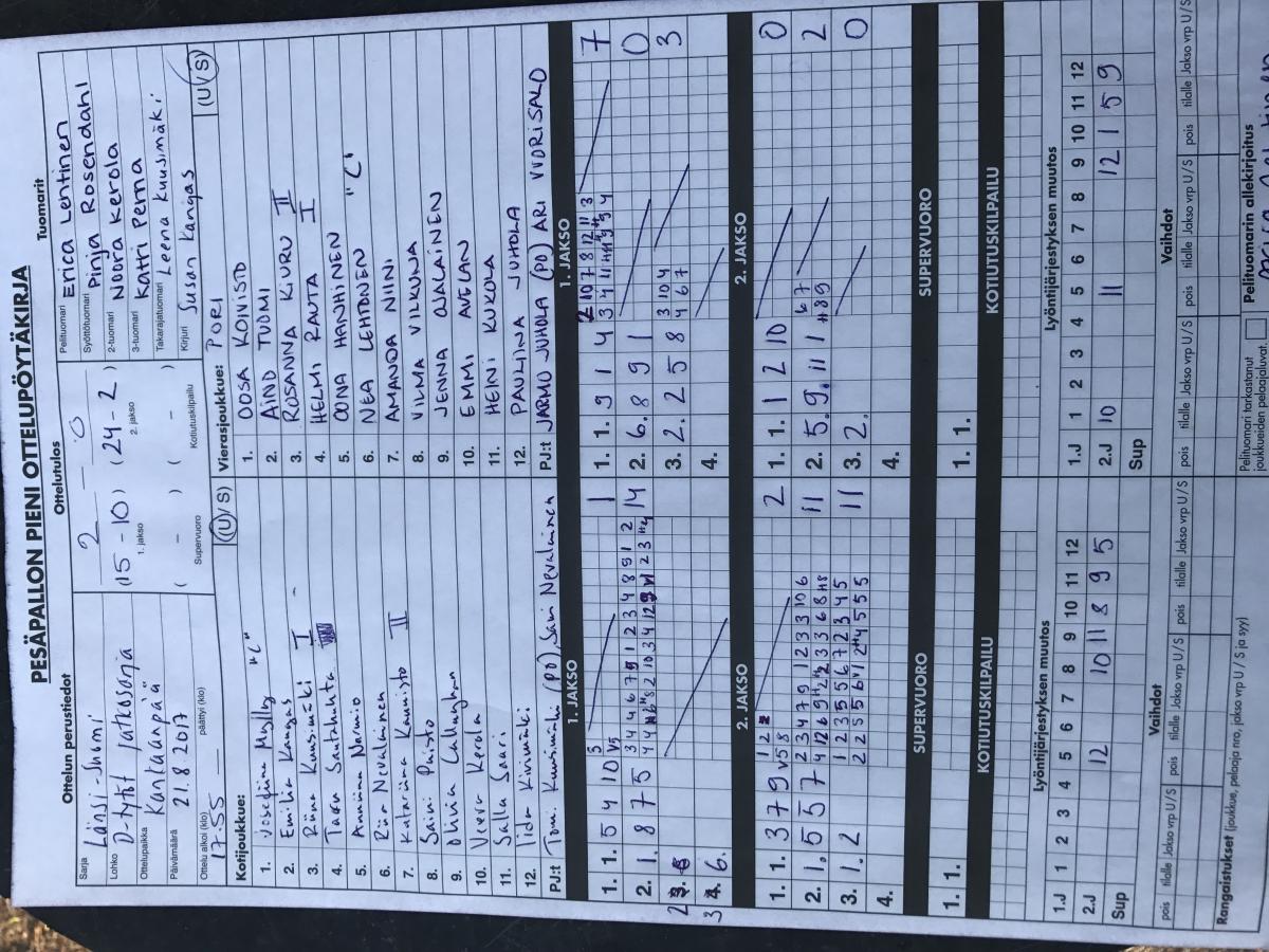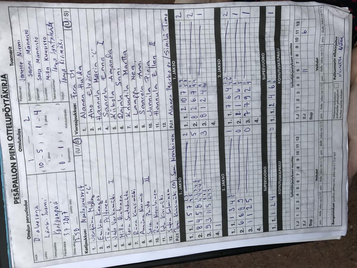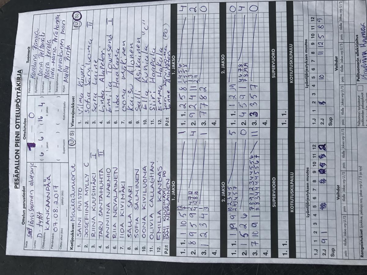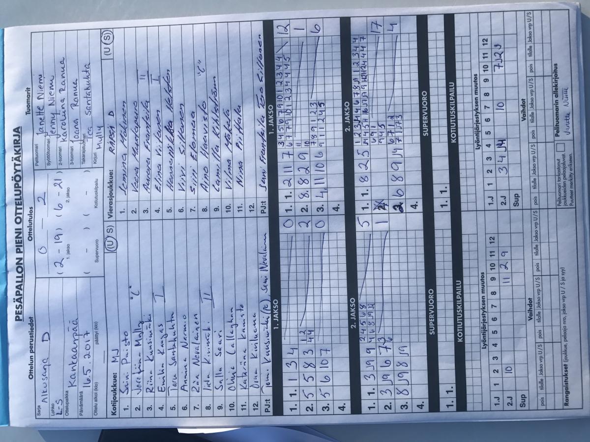| 29.6.2017 18:00 | Pesäkarhut D-punaiset | MJ-D tytöt | 2-0 (27-0, 25-5) | näytä | |