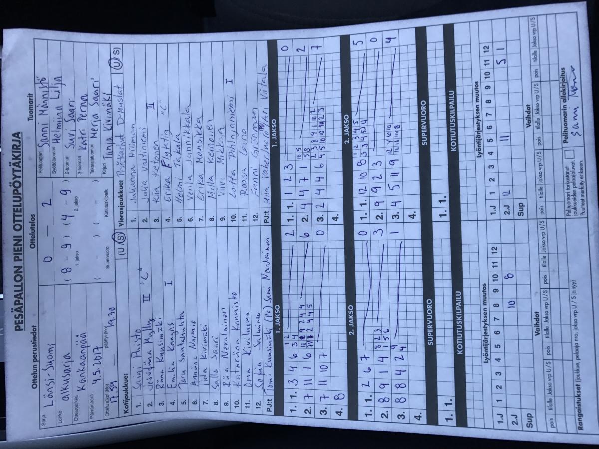 | 4.9.2017 18:00 | MJ-D tytöt | Pesäkarhut E05 | 2-0 (23-4, 11-1) | näytä | |