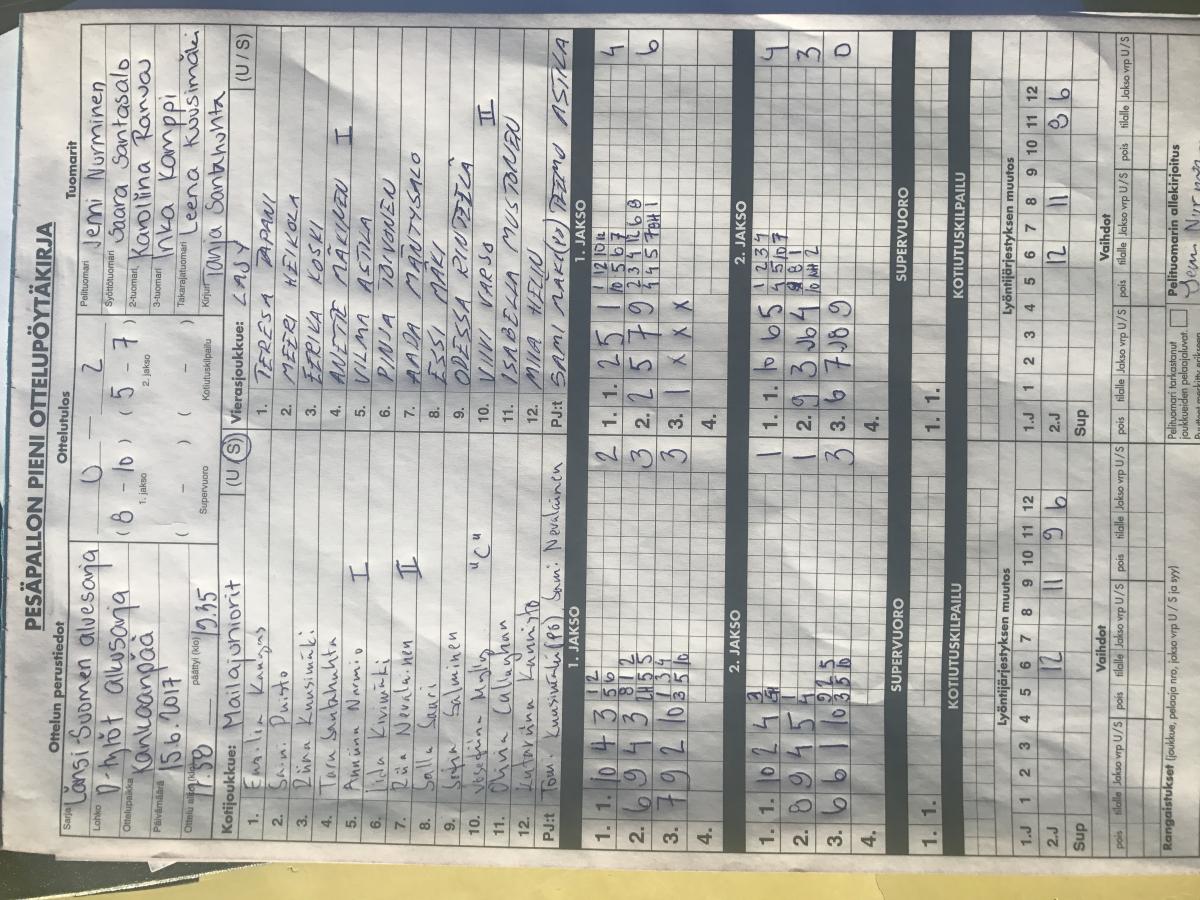 | 15.6.2017 18:00 | MJ-D tytöt | Lajy D | 0-2 (8-10, 5-7) | näytä | |