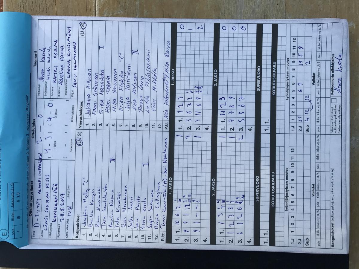 | 3.8.2017 18:00 | Lajy D | MJ-D tytöt | 2-0 (18-3, 12-2) | näytä | |