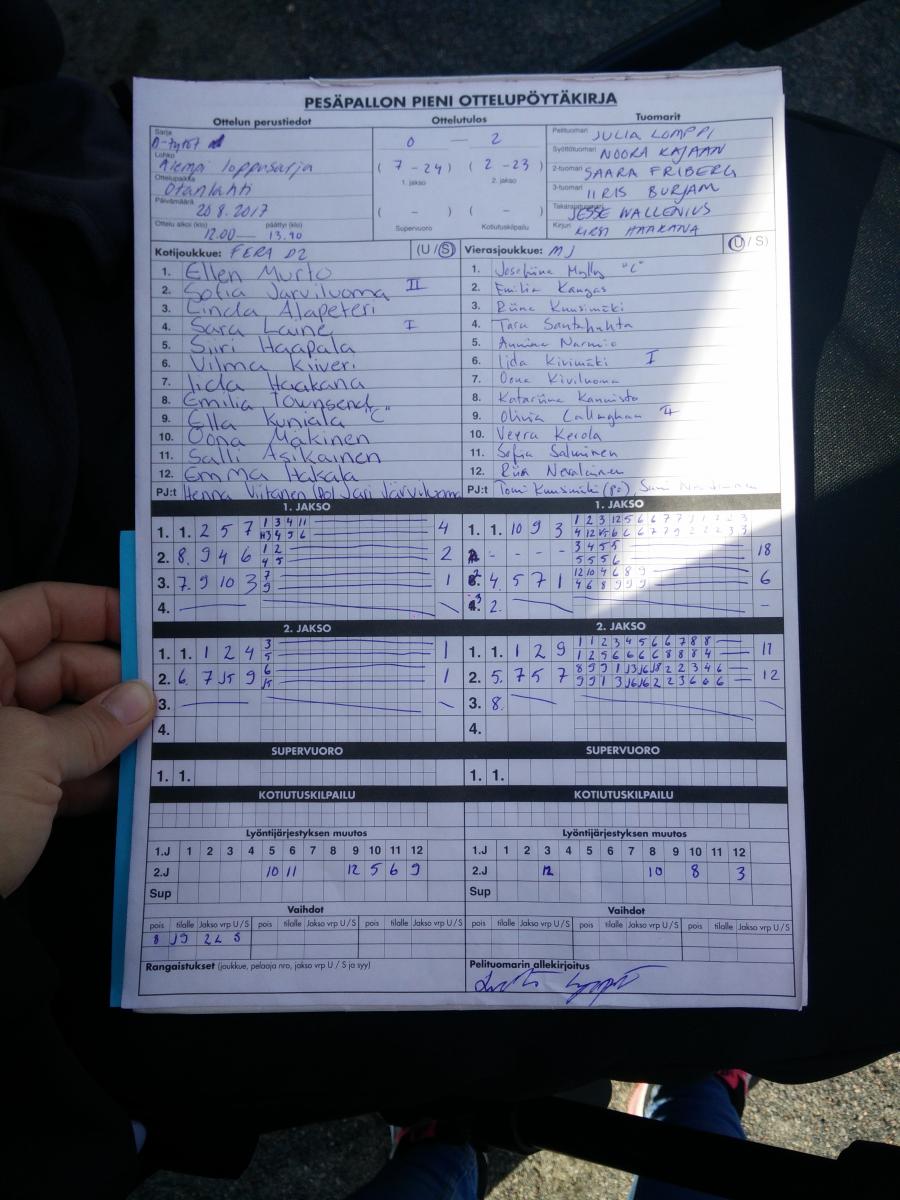 | 7.8.2017 18:00 | MJ-D tytöt | Fera D2 | 1-0 (6-6, 16-4) | näytä | |