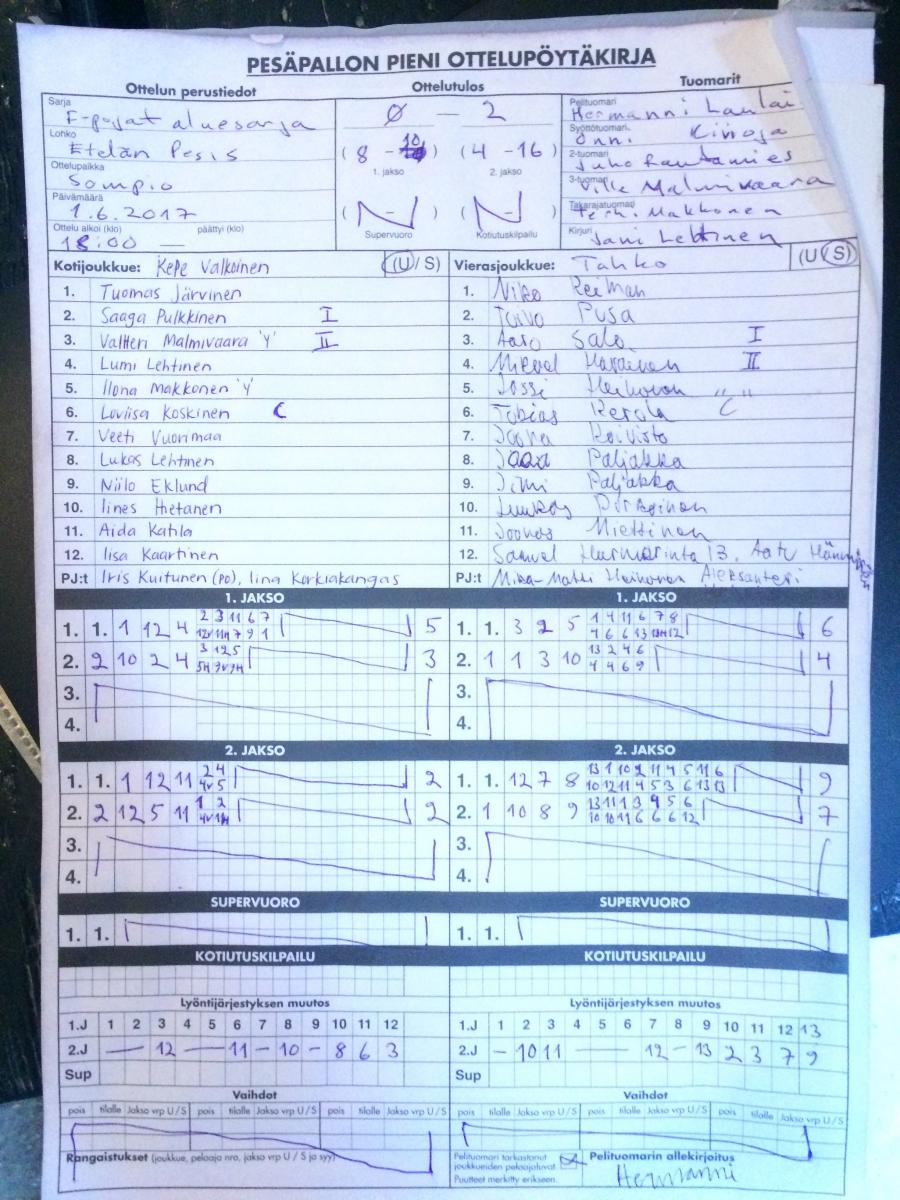 | 10.8.2017 18:00 | | Kepe Sininen | Tahko FP | 0-2 (1-3, 8-9) | näytä |