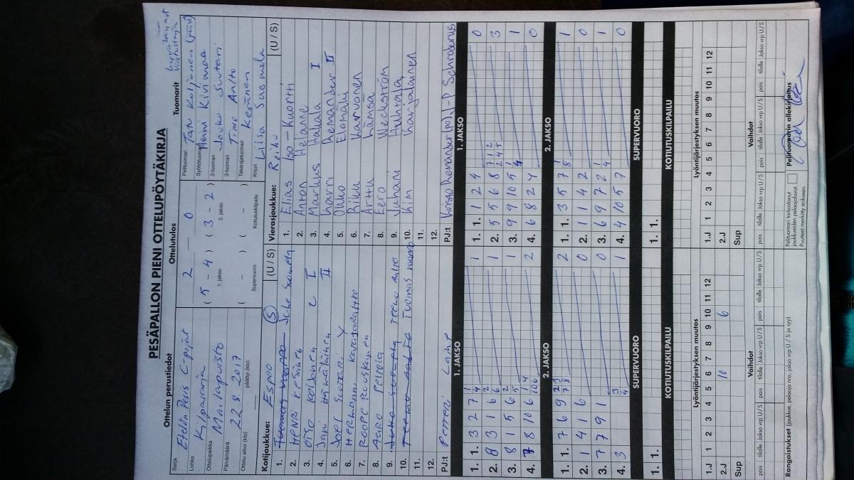 | 9.5.2017 18:00 | Espoon Pesis White | Tahko C2 | 0-2 (2-8, 2-8) | ||