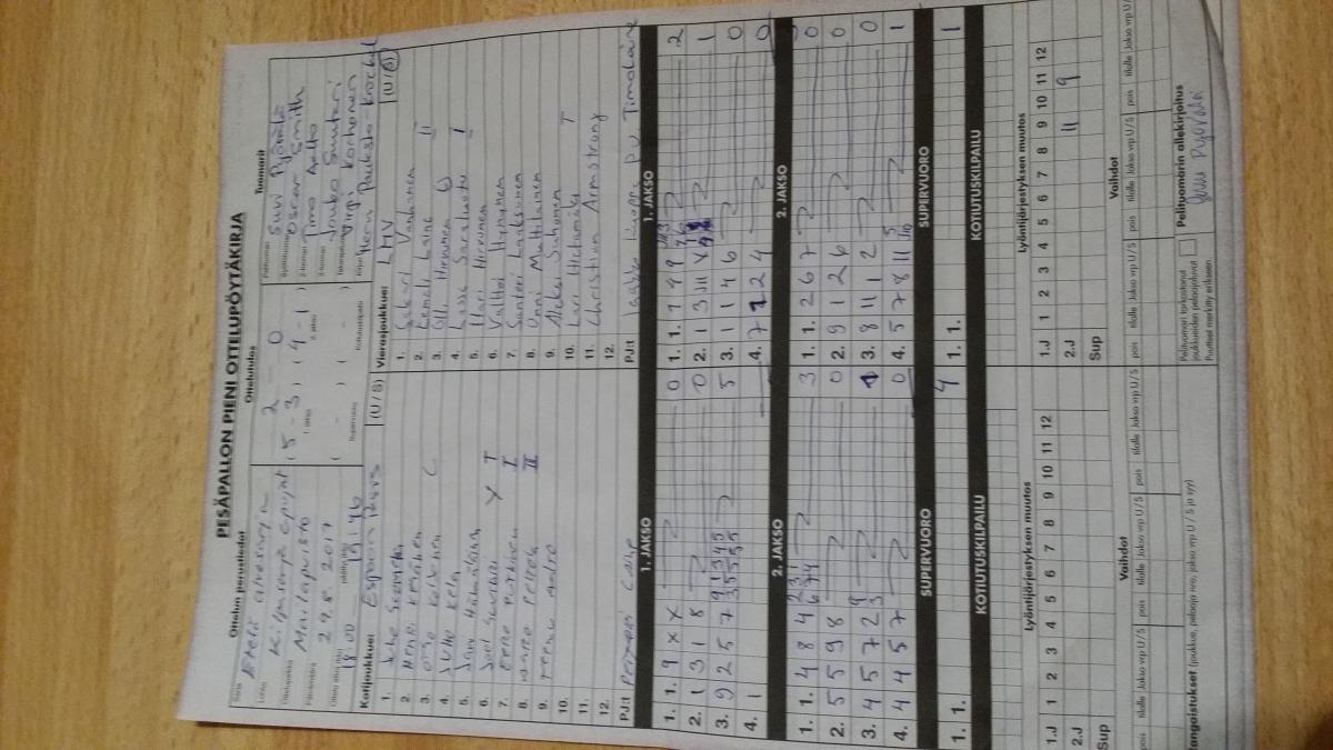 | 30.5.2017 18:00 | Espoon Pesis White | ViPa | 2-0 (11-10, 7-6) | ||