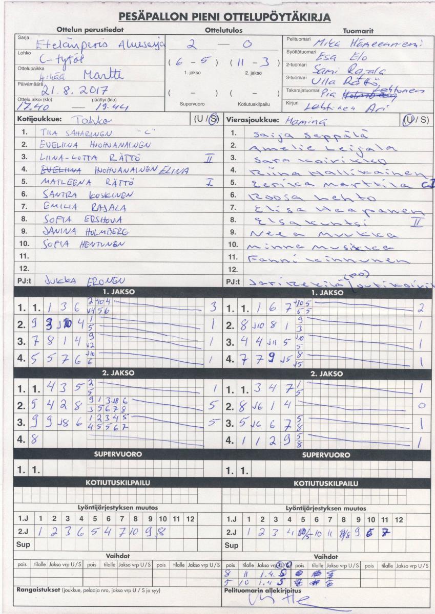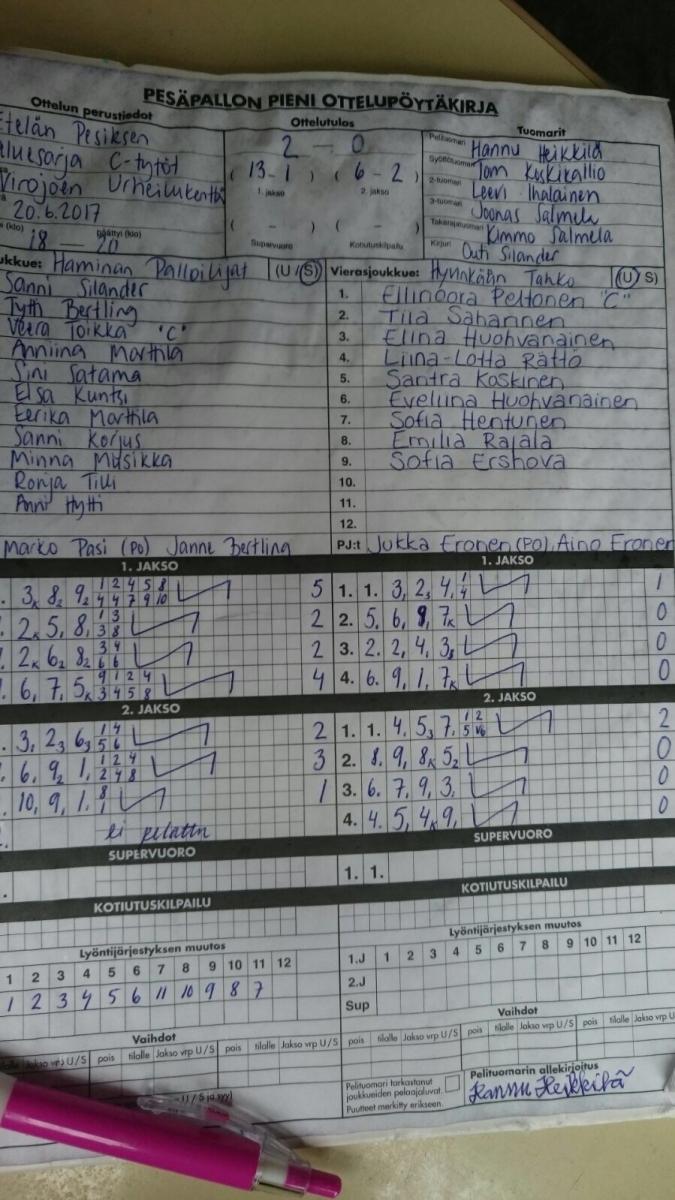 | 20.6.2017 18:00 | HP | Tahko CT | 2-0 (13-1, 6-2) | näytä | |