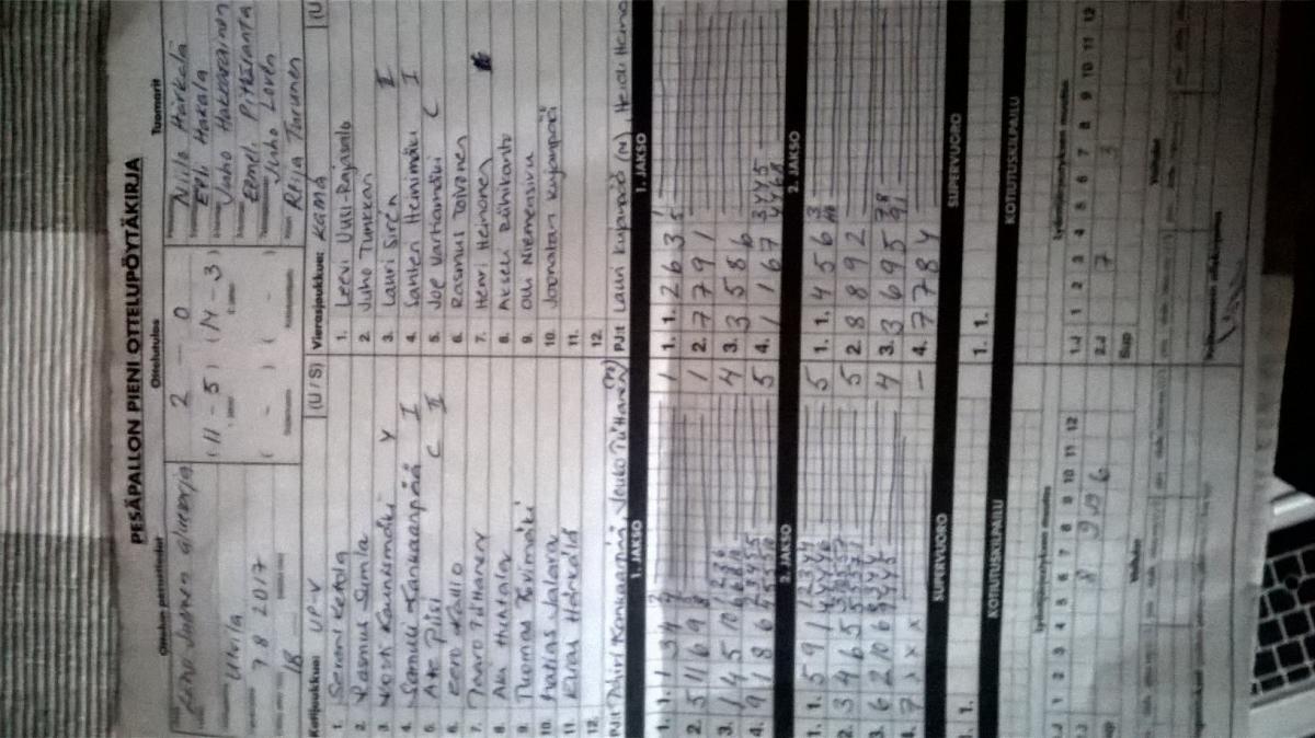 | 19.7.2017 18:00 | UP-V Punainen | RuoPi | 2-0 (12-4, 11-10) | näytä | |