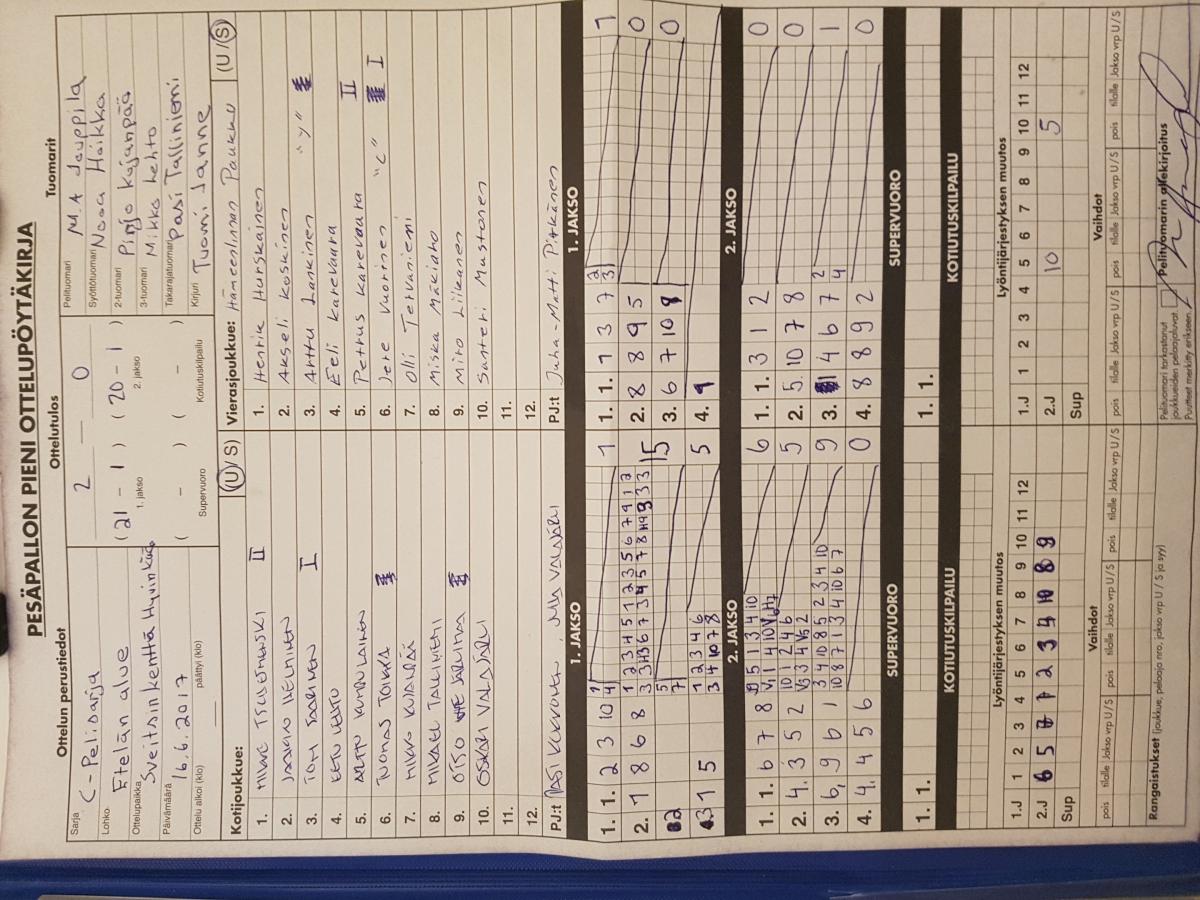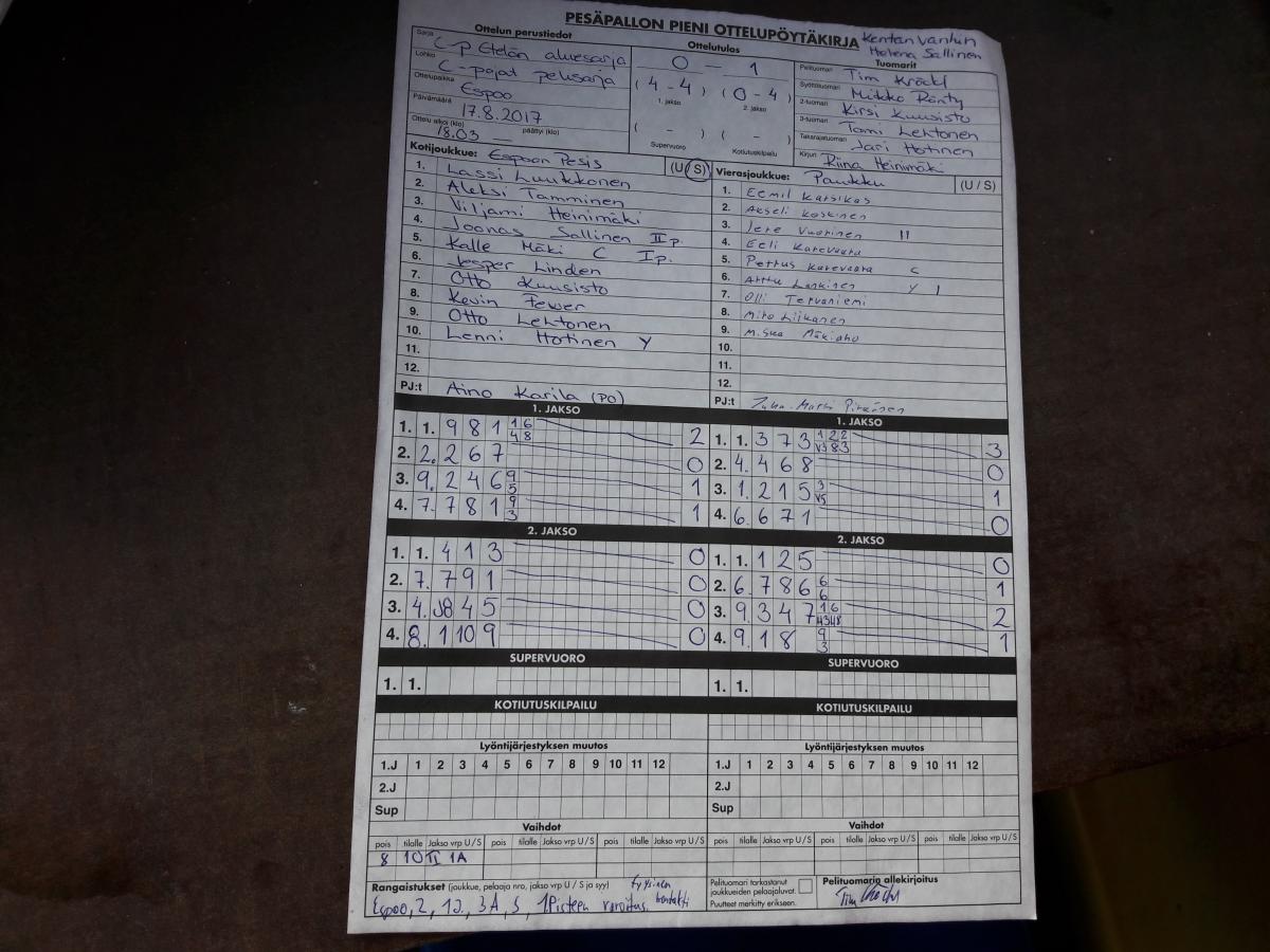| 3.9.2017 16:00 | Paukku C-Pojat | KEPE | 0-2 (0-20, 0-13) | ||