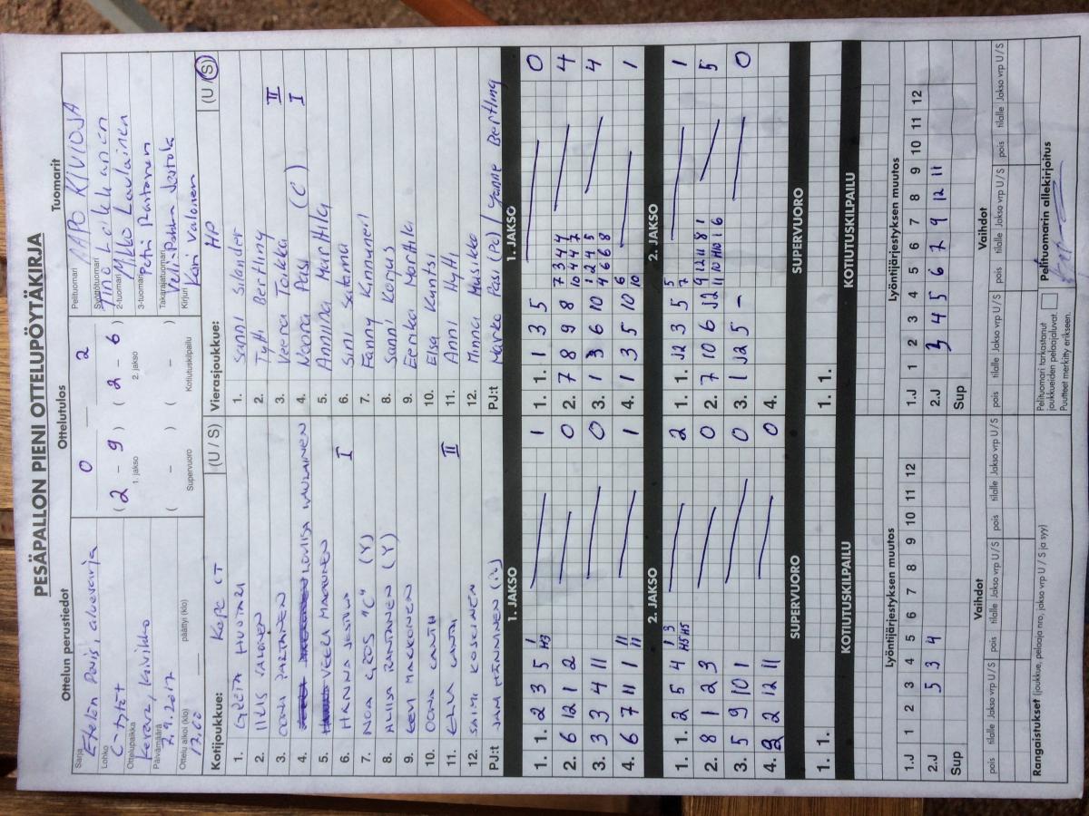 | 25.5.2017 11:00 | Kepe CT | Puhti DT | 2-0 (20-3, 23-3) | näytä | |