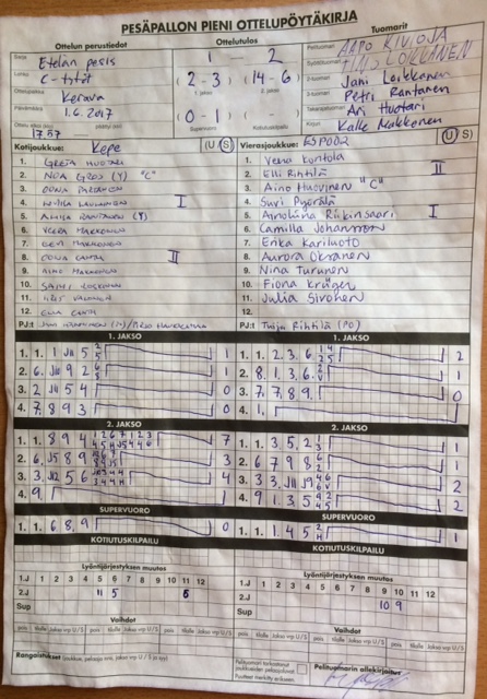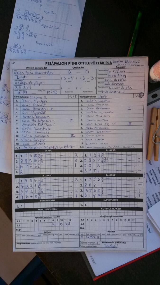 | 1.6.2017 18:00 | Kepe CT | Espoo 2 | 1-2 (2-3, 14-6, 0-1) | näytä | |