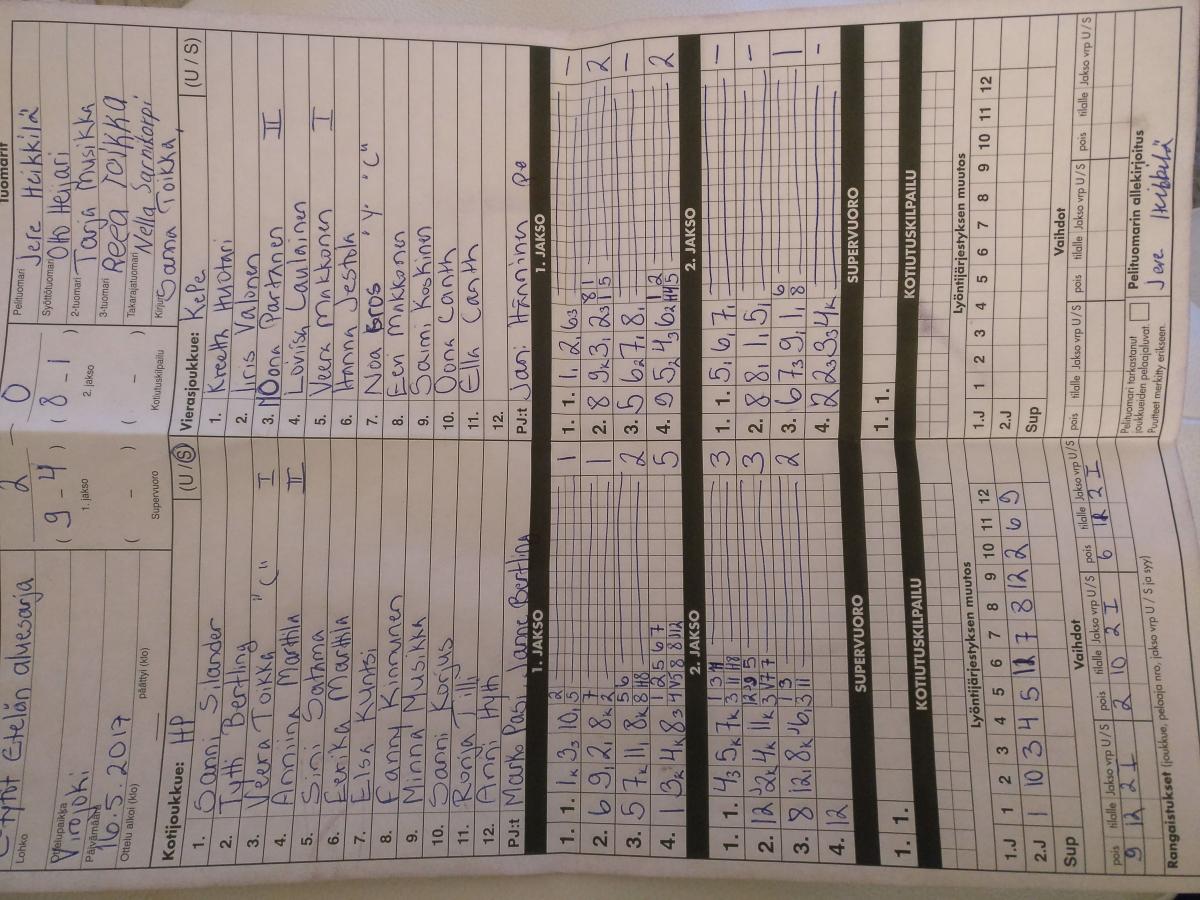 | 16.5.2017 18:00 | HP | Kepe CT | 2-0 (9-4, 8-1) | näytä | |
