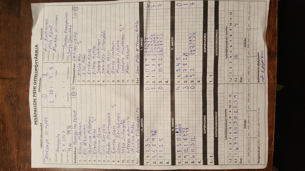 | 5.7.2017 | Humppila | Laitila | 0-2 (2-20, 7-8) | näytä | |