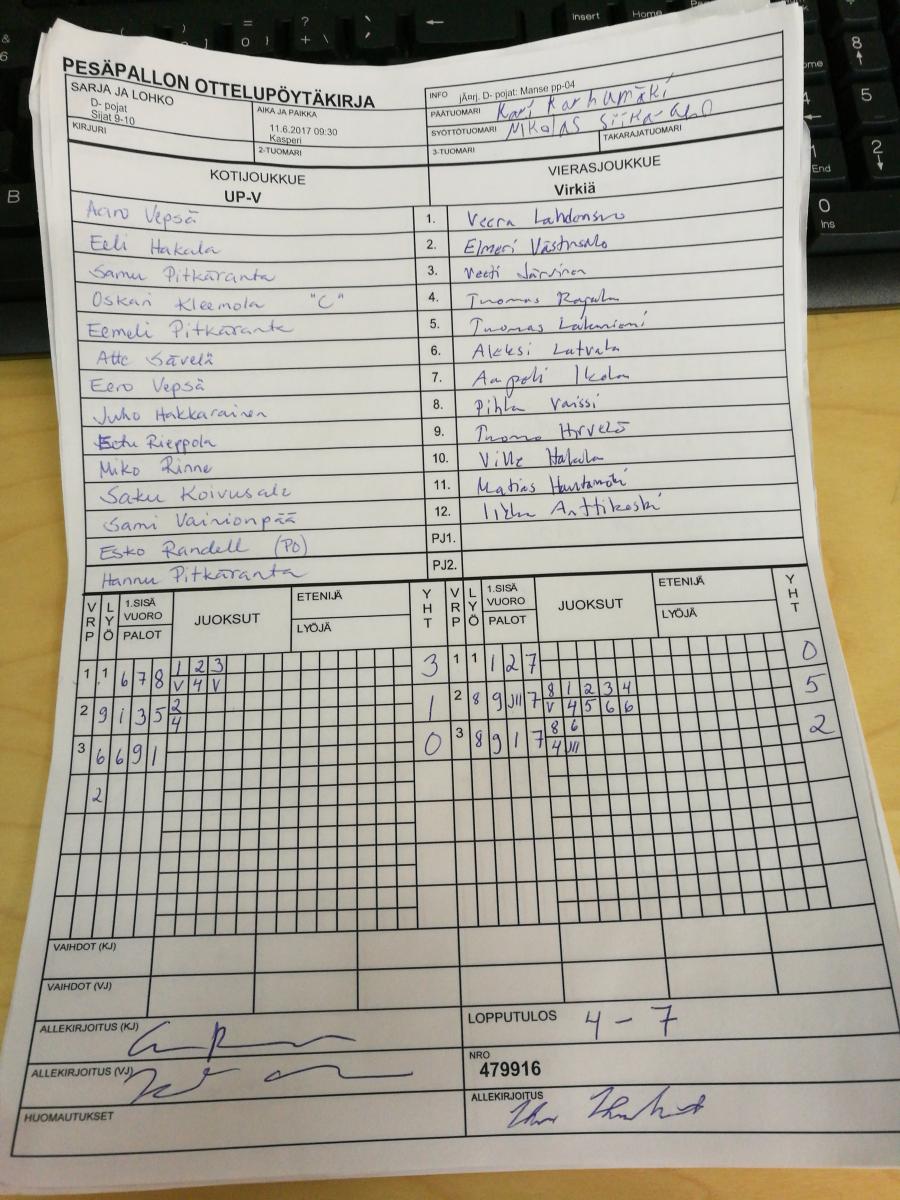 | D- pojat - Lohko A | 9.6.2017 12:30 | Kasperi | Manse pp-04 | UP-V | Virkiä |